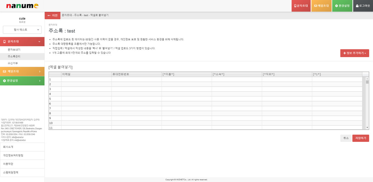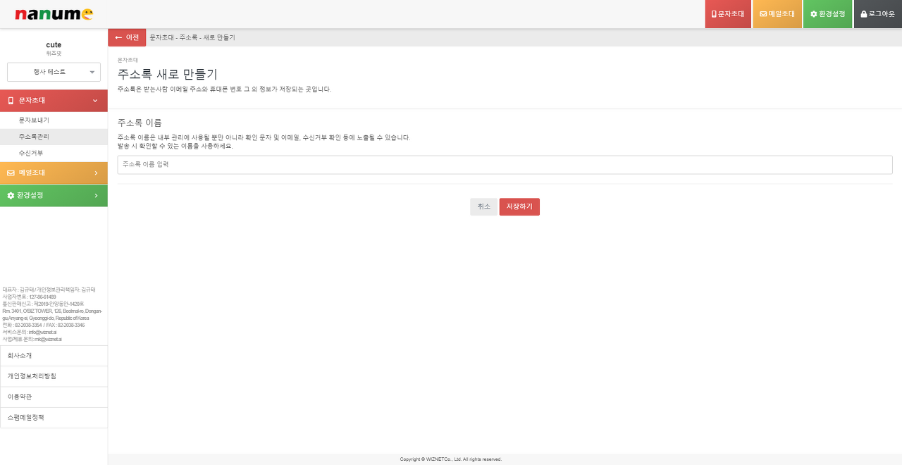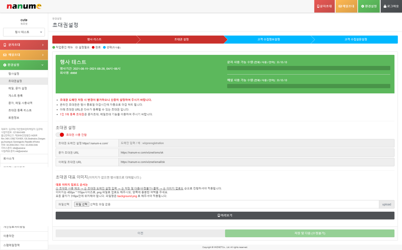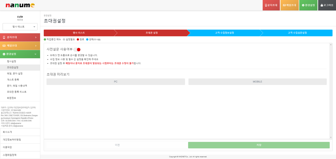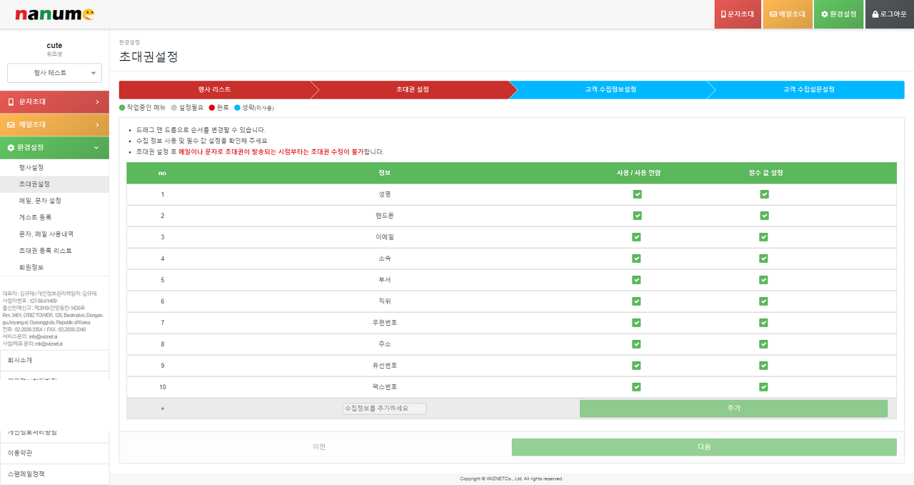 나눔초대는 문자/메일/초청장 발송 시스템으로 그중 초청장은 발송될 input, checkbox, radio 등의 폼을 지정할 수 있습니다.
