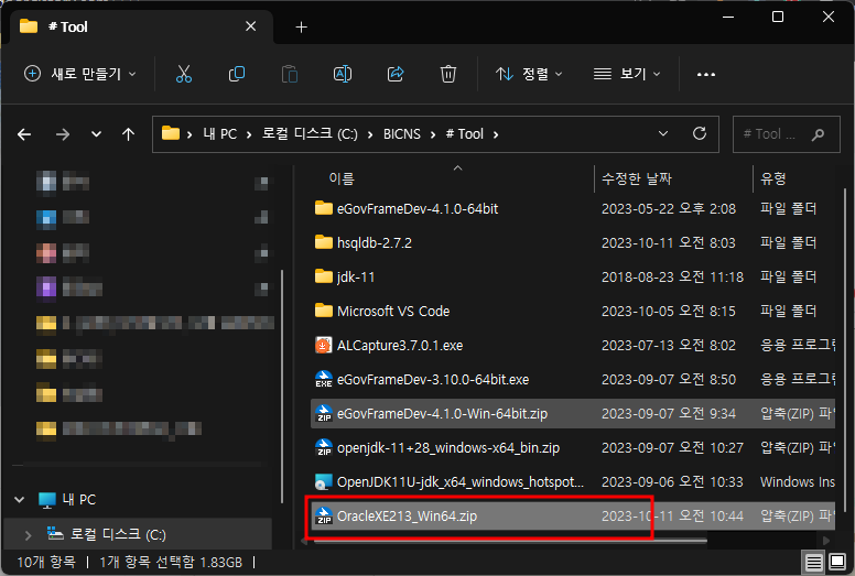 오라클에 접속 - 스크롤 - Download Oracle Database 19c - Download Oracle Database XE for Windows(ZIP)