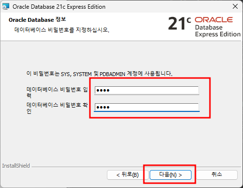 데이터베이스의 비밀번호는 메모해 두도록한다.