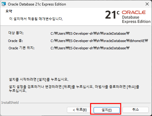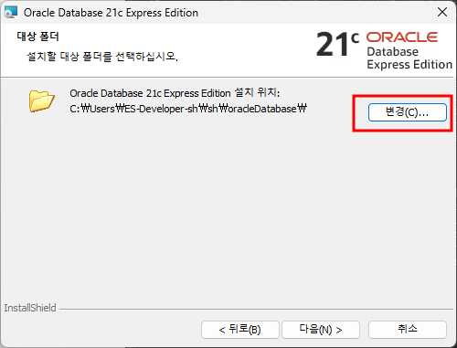 설치경로를 지정하고 싶다면 변경해도 좋다.