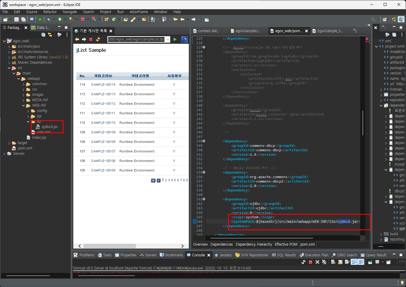 ojdbc8도 다운받아 src - main - webapp - WEB-INF - lib 경로에 저장하자.