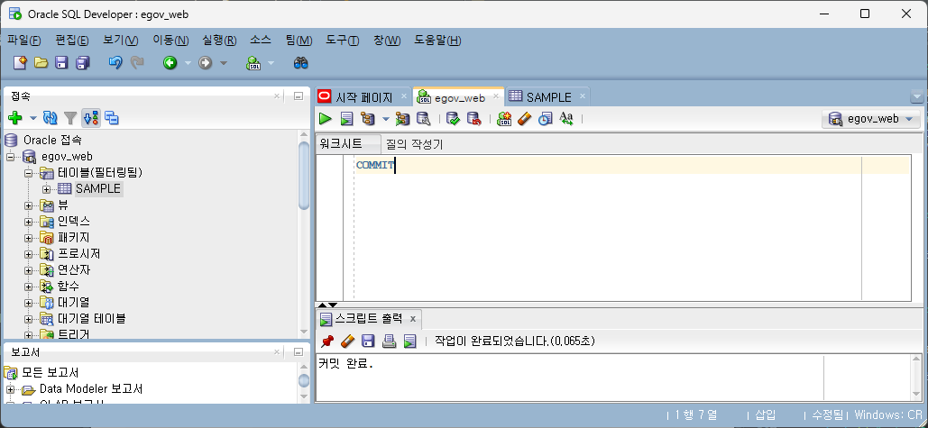쿼리실행 + commit