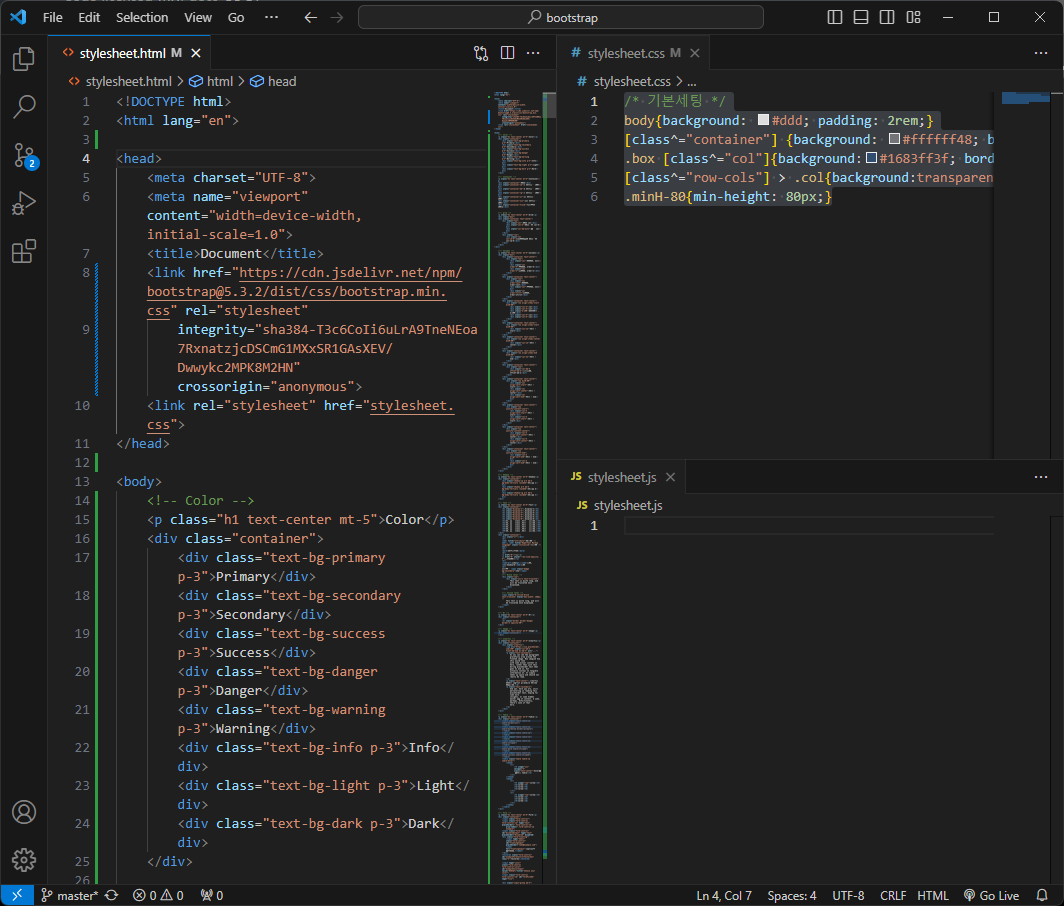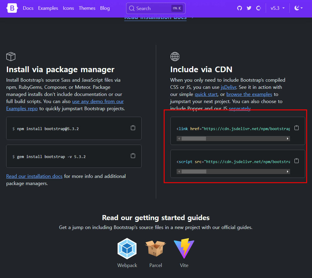 Bootstrap에 접속해 cdn 코드를 복붙한다.
