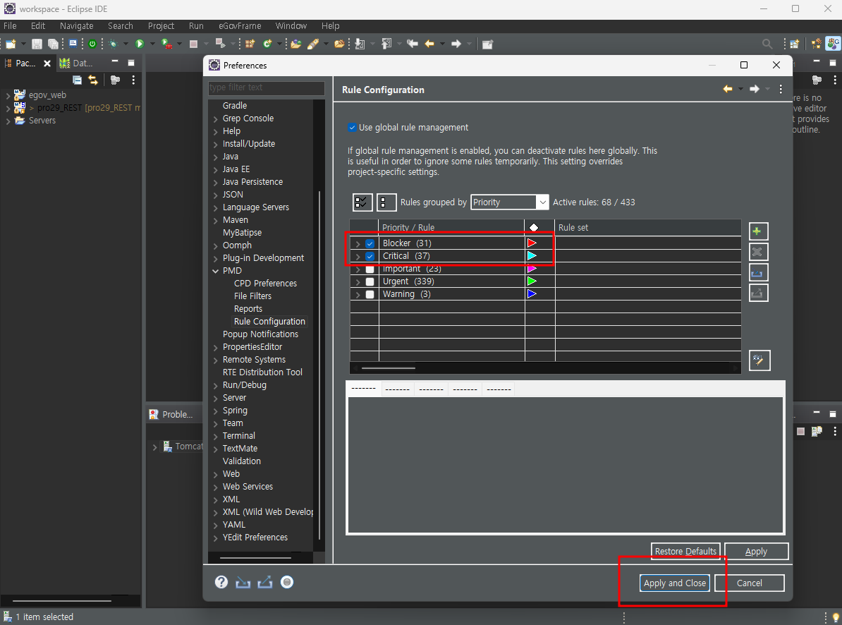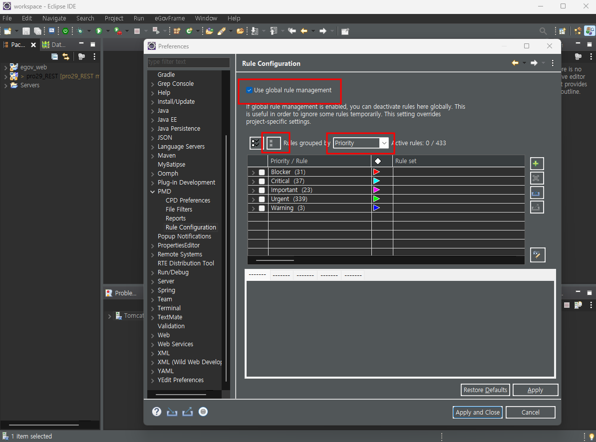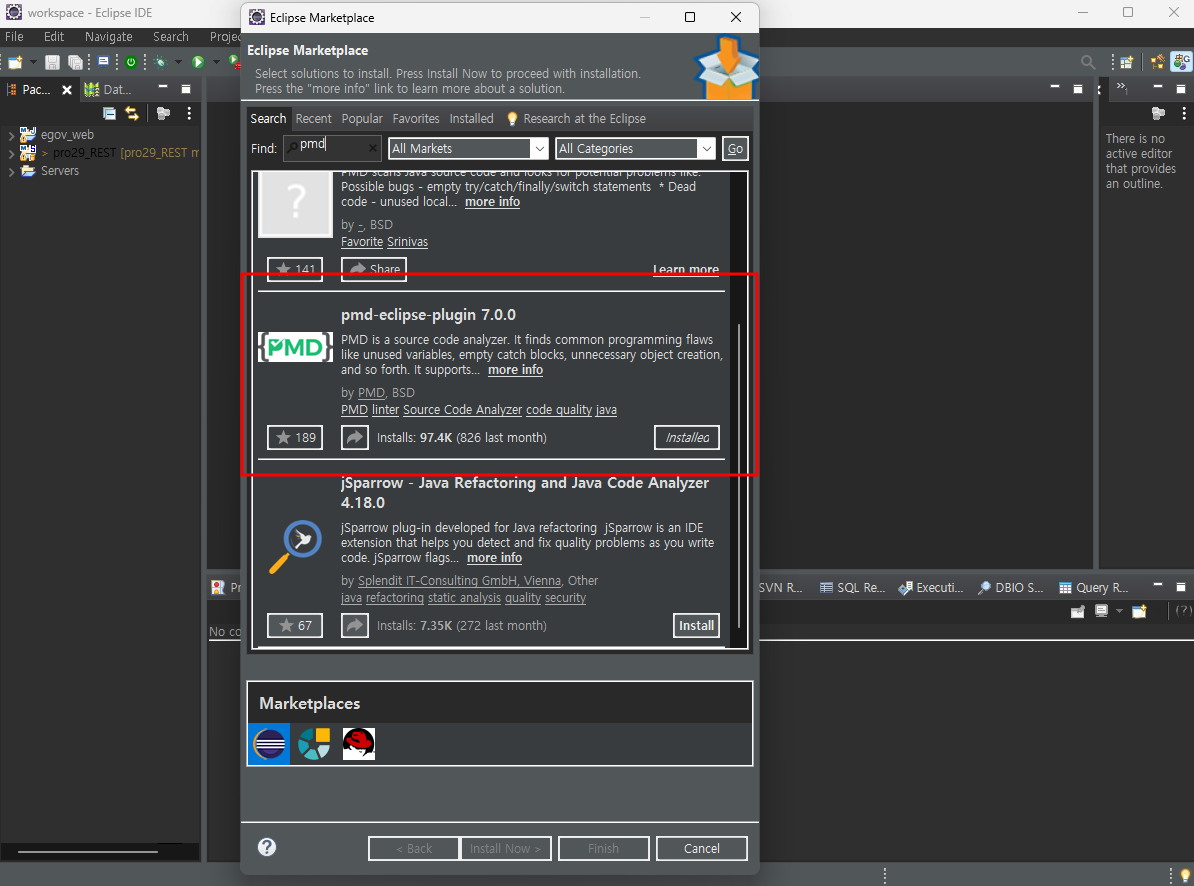 Eclipse 설치 후 Marketplace에서 PMD 플러그인을 설치하면 사용할 수 있다.