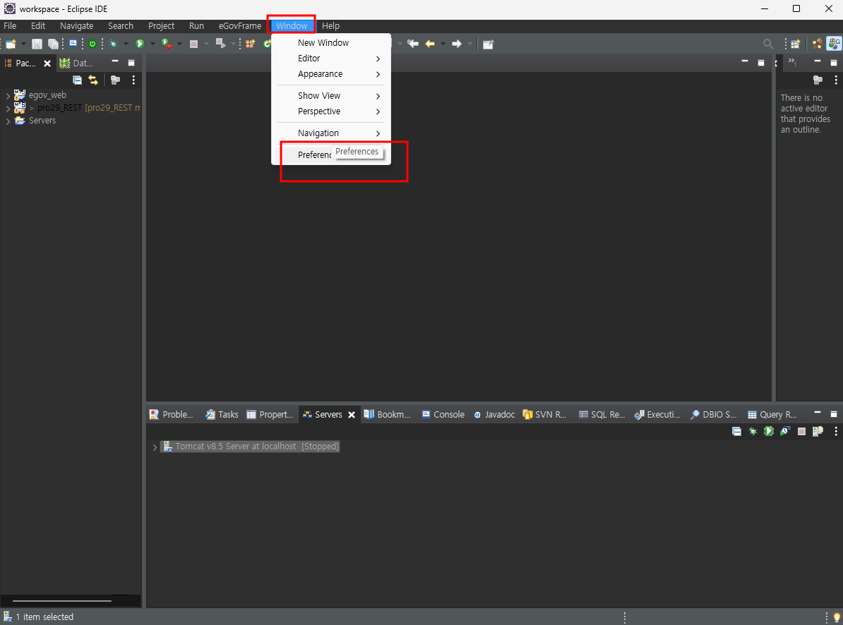 만약에 전자정부프레임워크를 설치했다면 이미 설치되어있어 Perference에서 확인해볼 수 있는데,
