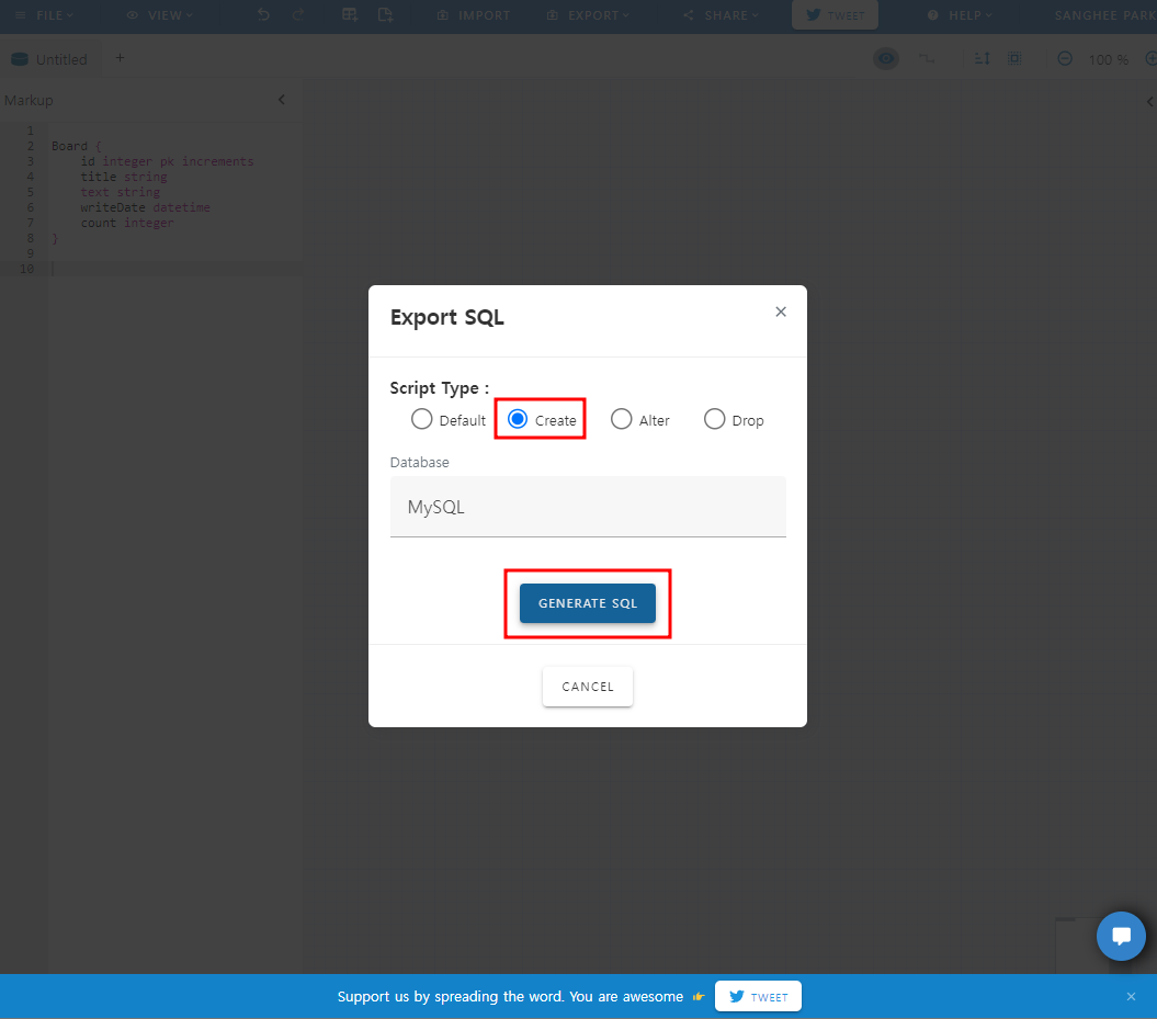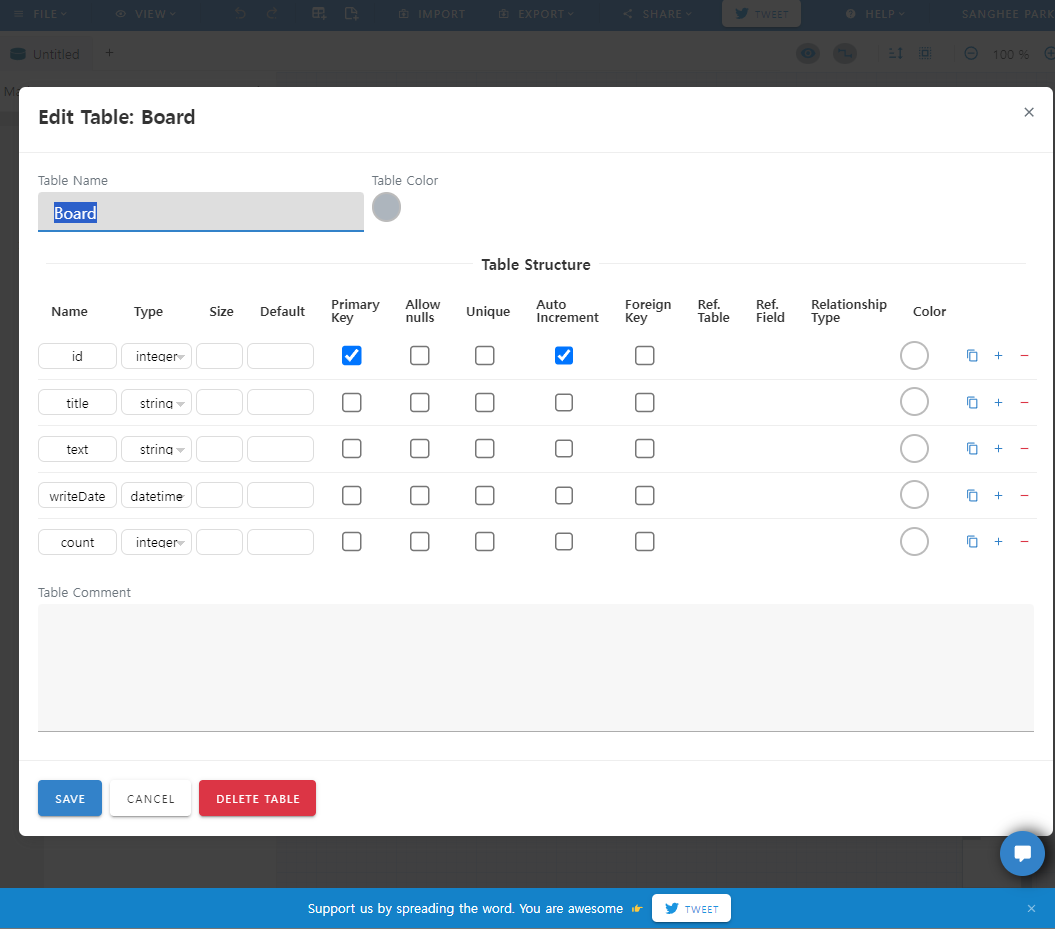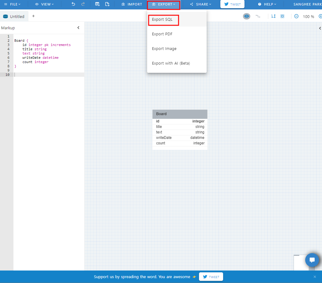 몇번을 시도해보고 재부팅을 하다 결국 ERD툴을 서치했다.