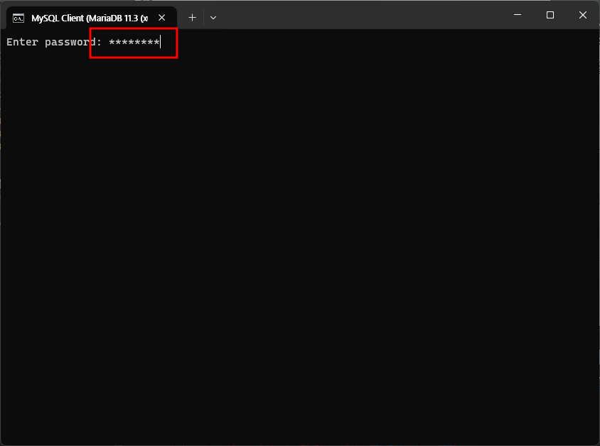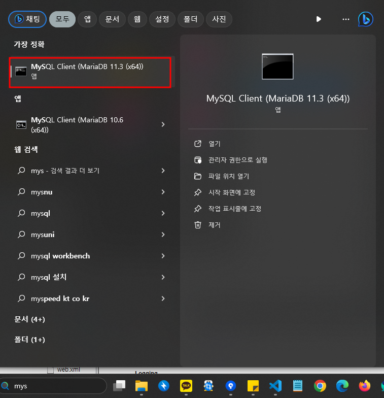 앞서 MariaDB 설치시 함께 설치되었던 MySQL Client실행 - 비밀번호입력