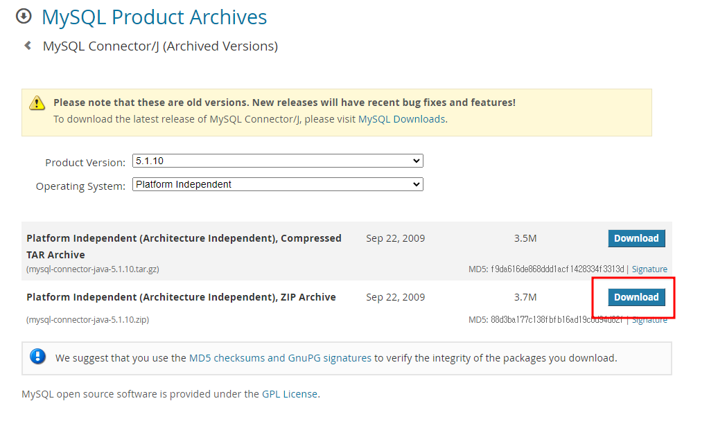 Please note that these are old versions. New releases will have recent bug fixes and features! To download the latest release of MySQL Connector/J, please visit MySQL Downloads. MySQL open source software is provided under the GPL License.