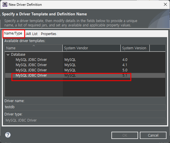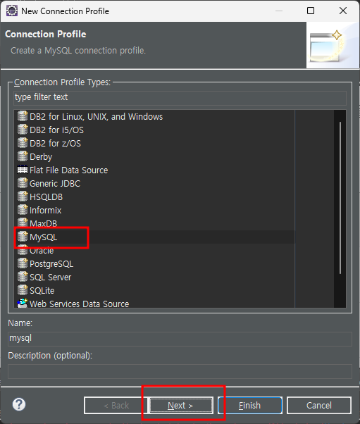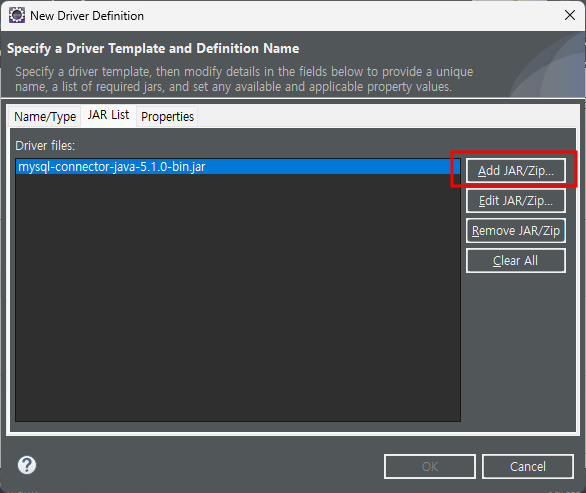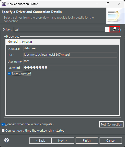 MySQL 선택 후 - next - Driver 오른쪽 첫번째 아이콘을 클릭