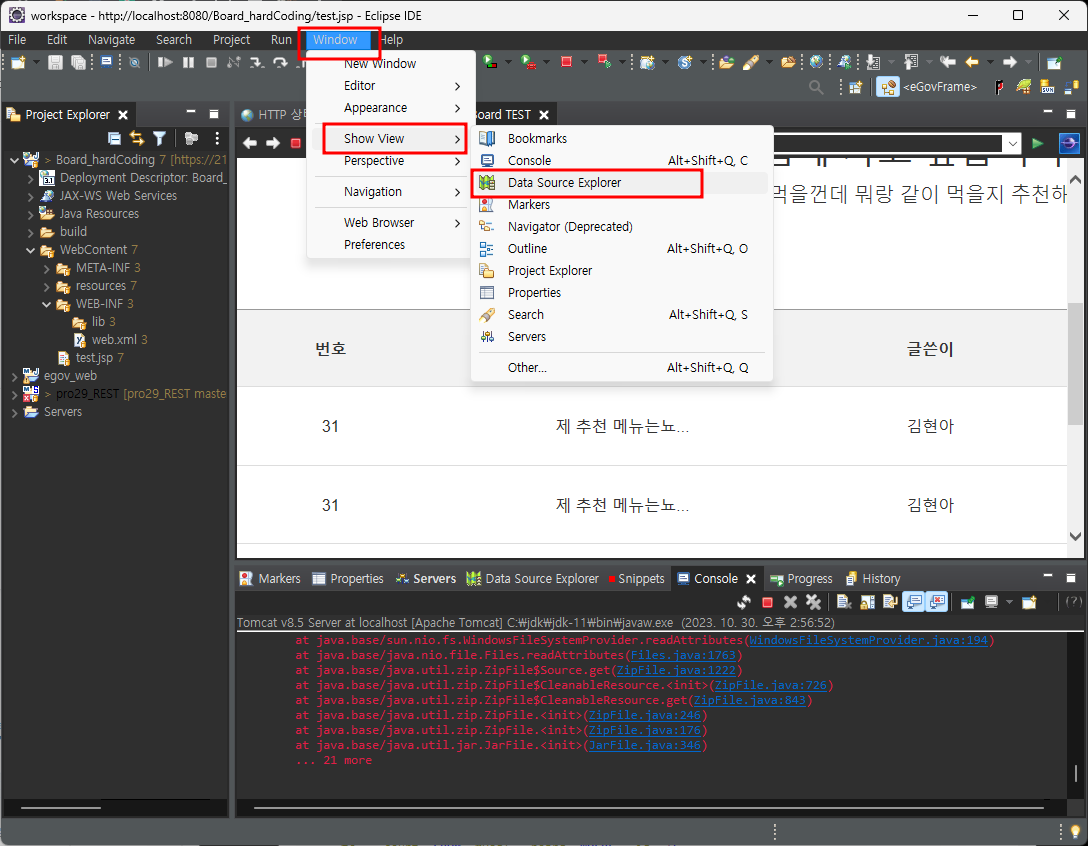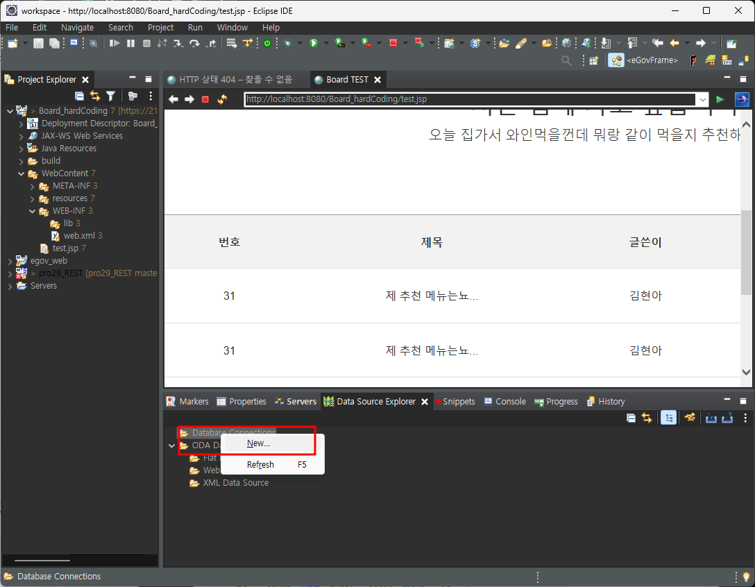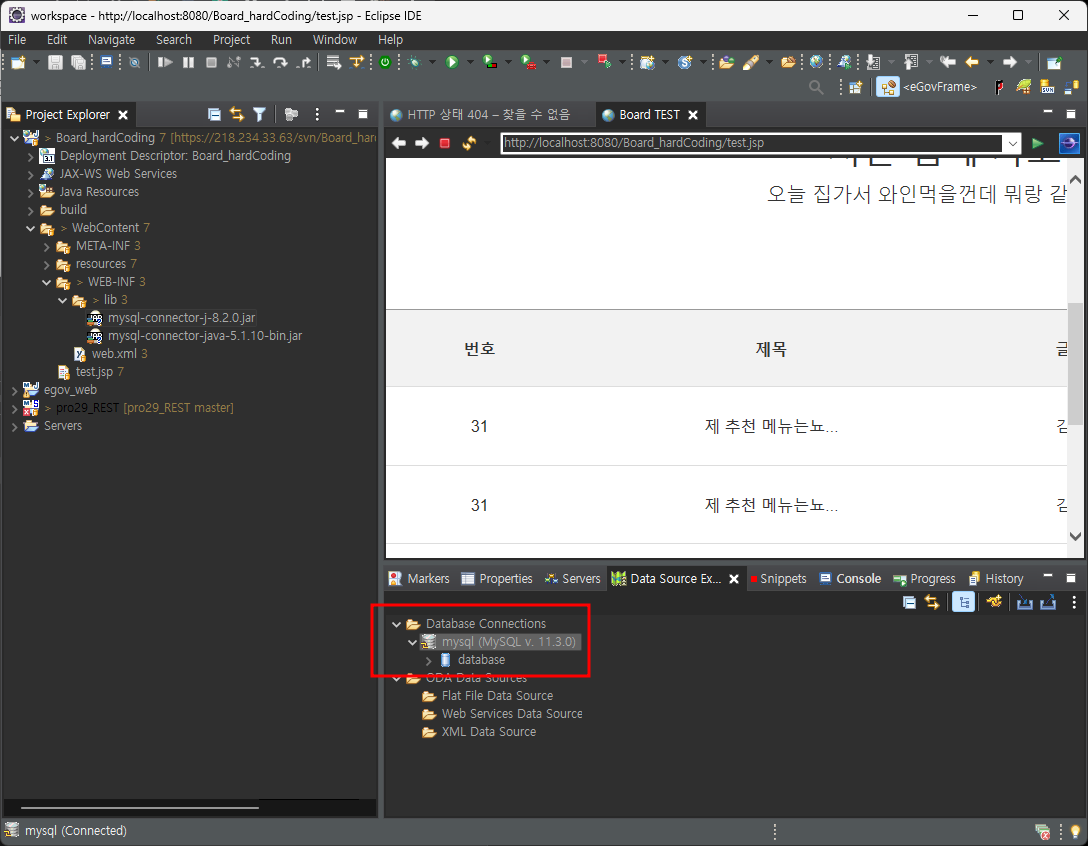 이 DB를 Eclipse의 data Source Explorer로 연결해보자.