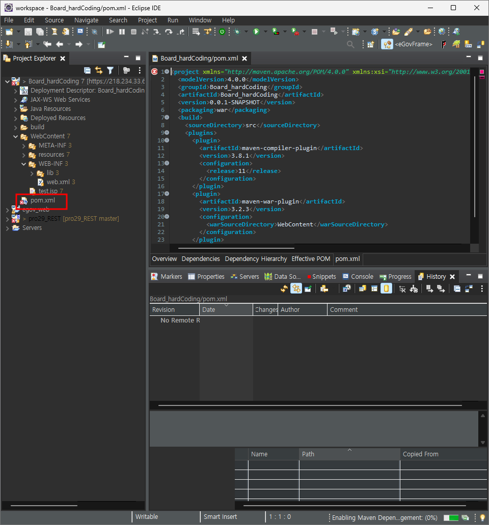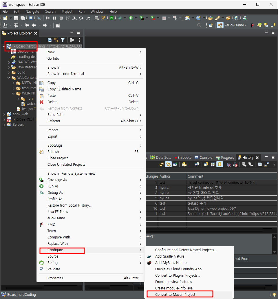 프로젝트 우클릭 - Configure - Convert to Maven Project - finish