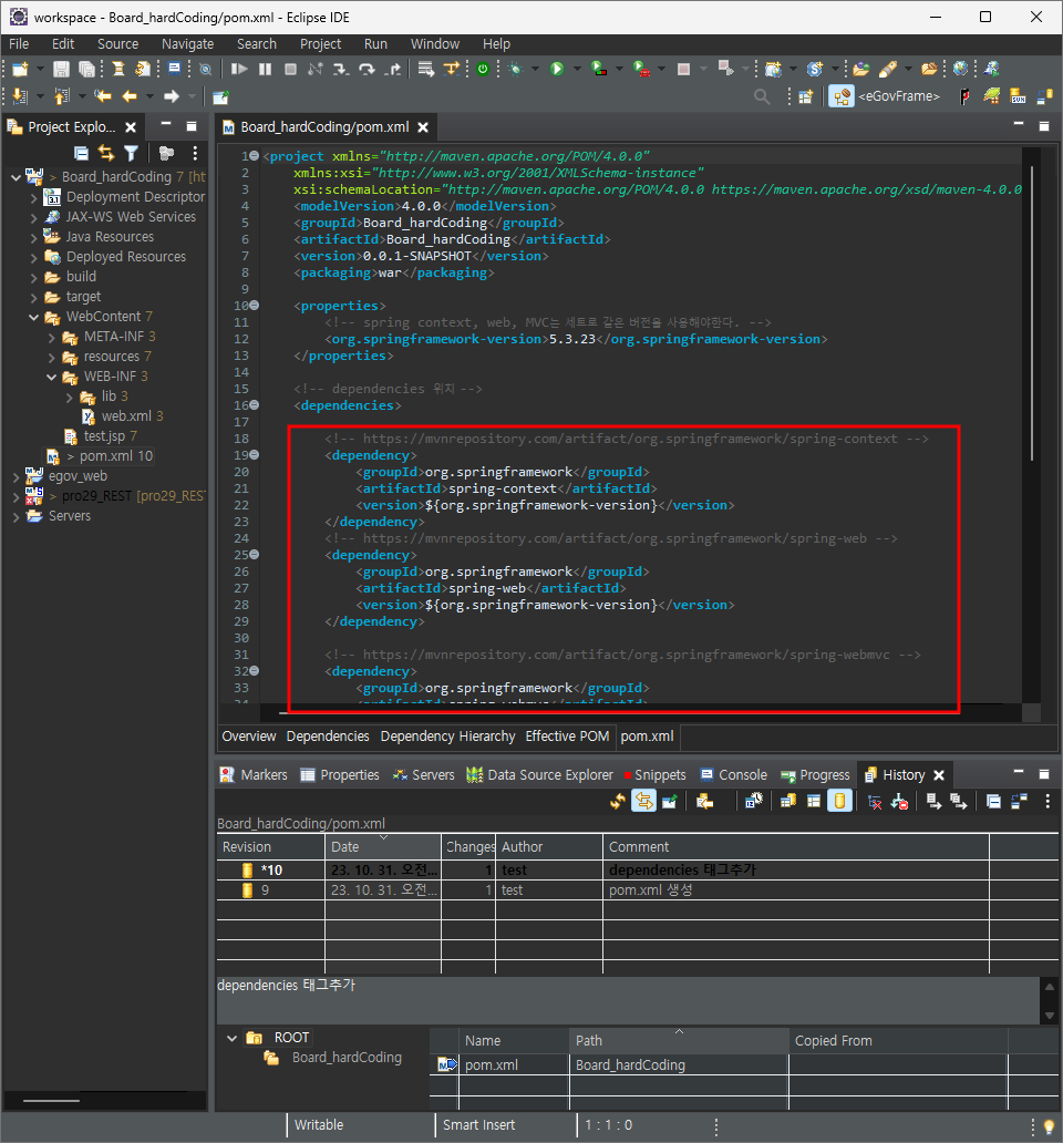 <!-- spring context, web, MVC는 세트로 같은 버전을 사용해야한다. -->