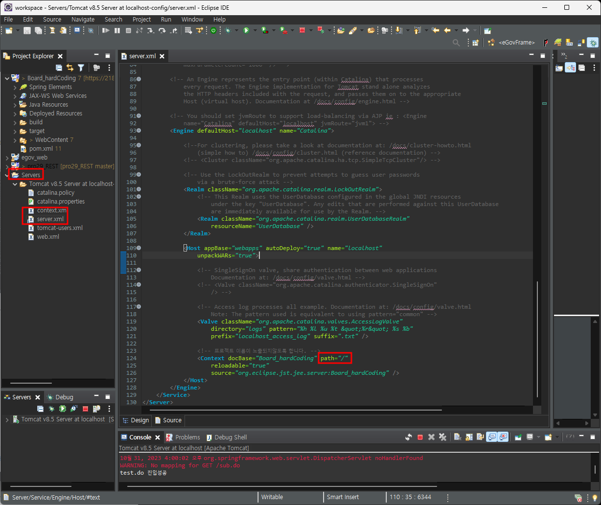 서버재시작 후 프로젝트 name을 제외하고 요청시 잘 접속되는지 확인한다.