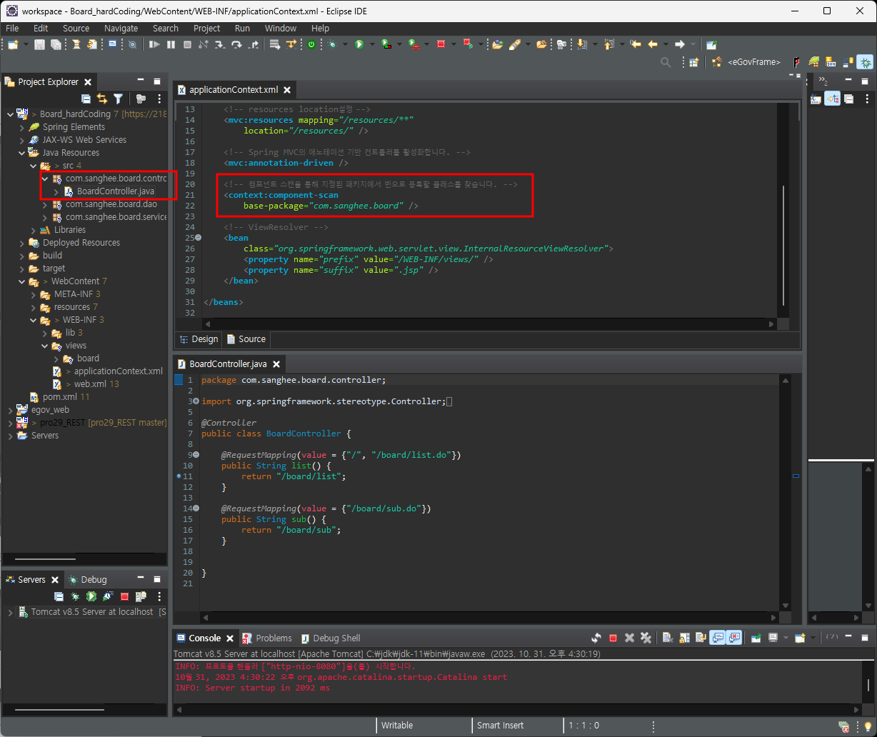 base-package="com.sanghee.board" />