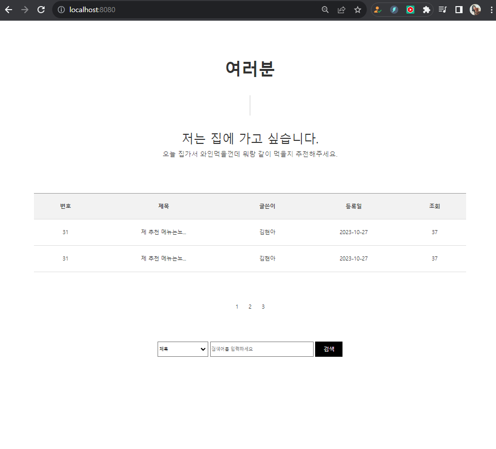 각 url에 mapping된 화면이 잘 뜨는지 확인한다.