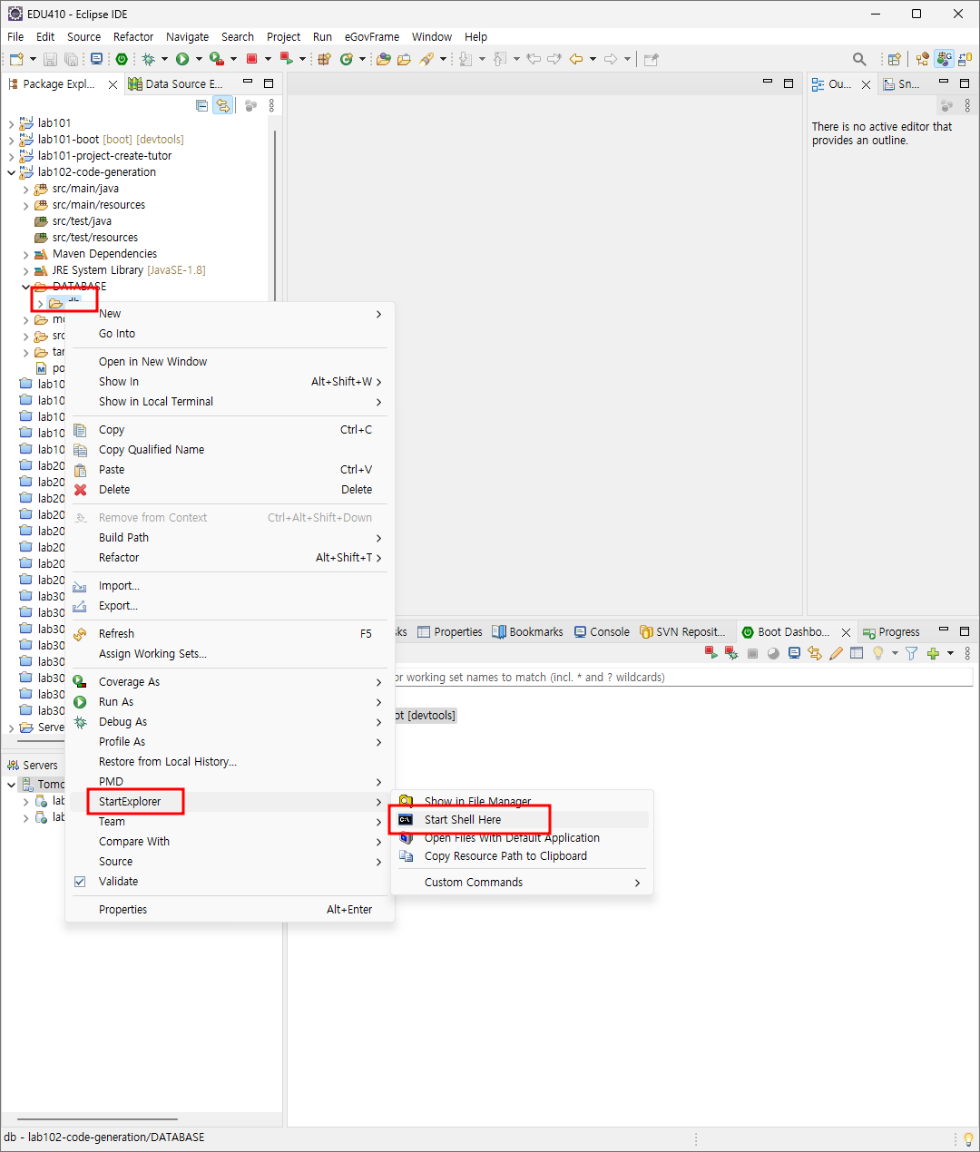 프로젝트폴더 - database/db - 우클릭 - startexplorer - start shell here