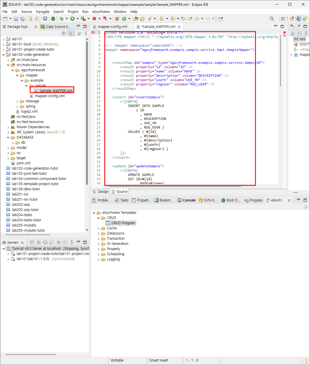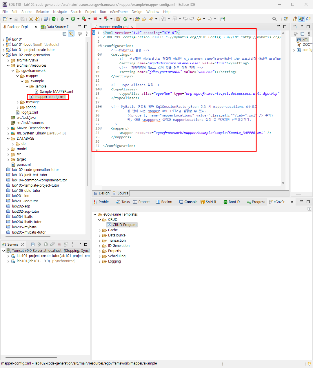 연결시킨 mapper 폴더안에 mapper-config.xml과 sample_mapper.xml이 잘 생성되었다.