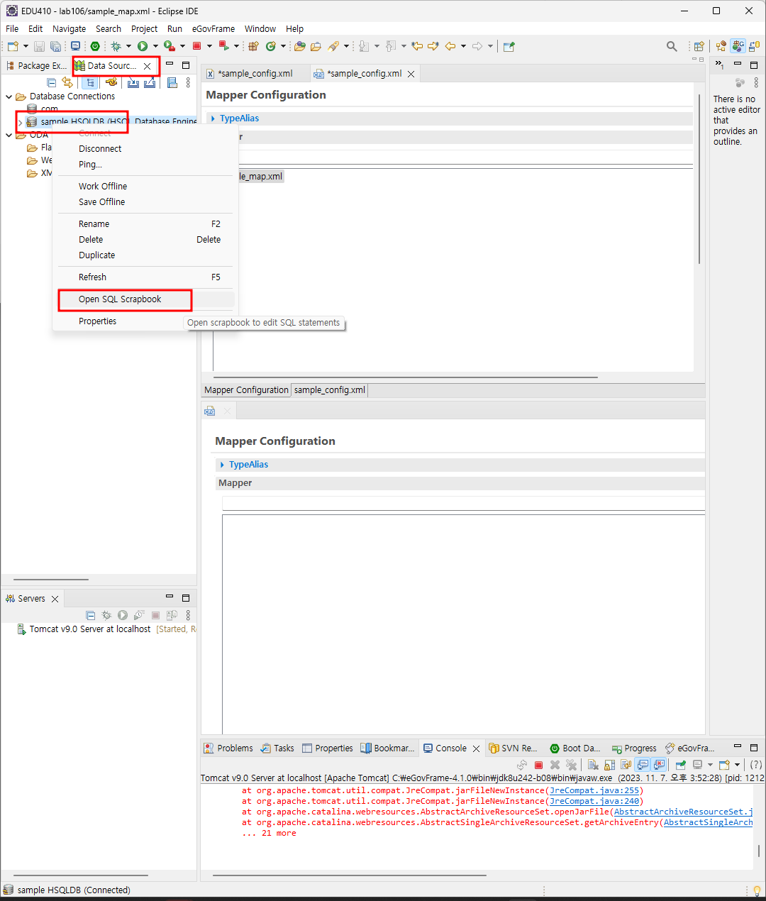 전자정부프레임워크 DB 실행하기: Start Shell Here, Data Source Explorer