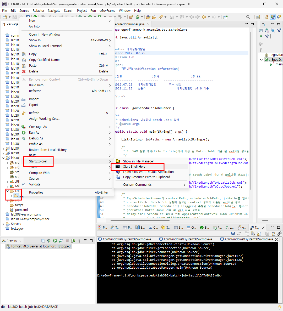 DB폴더 - 마우스 오른쪽 - Start explorer - start shell here