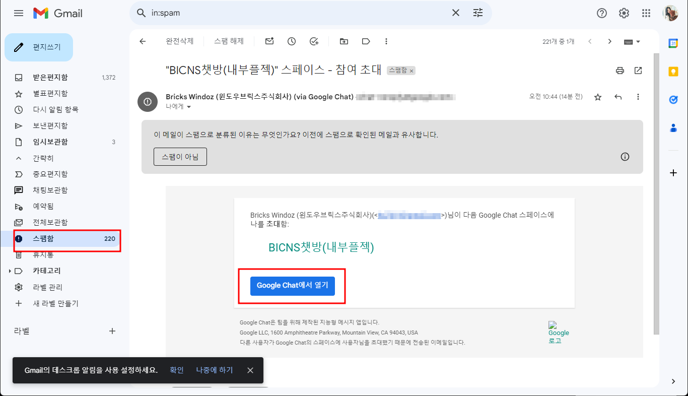 우선 초대링크가 스팸함으로 빠졌을 가능성이 있으니 확인하자.