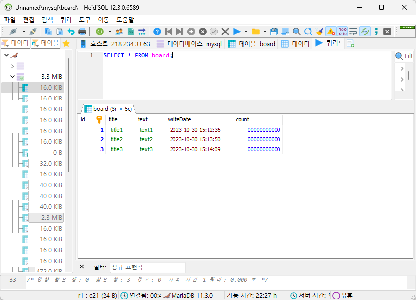 DB연결 테스트를 완료했다면 본격적으로 게시판을 구현해보자.