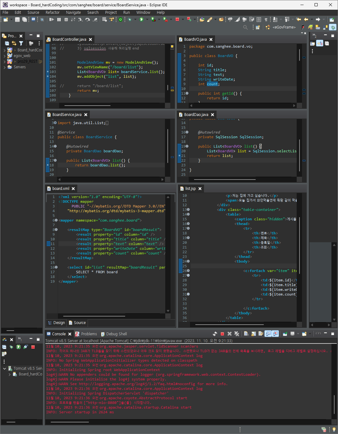 List<BoardVO> list = SqlSession.selectList("com.sanghee.board.list");
