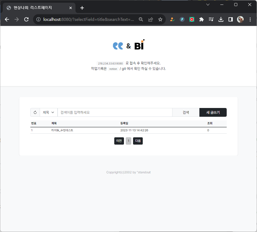 MVC패턴 게시판 구현하기: 리스트페이지