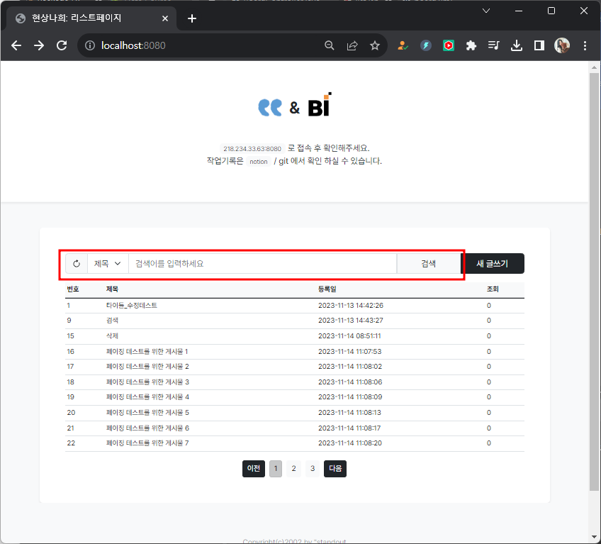 이번엔 불러낸 리스트에서 ajax검색기능을 추가해보자.