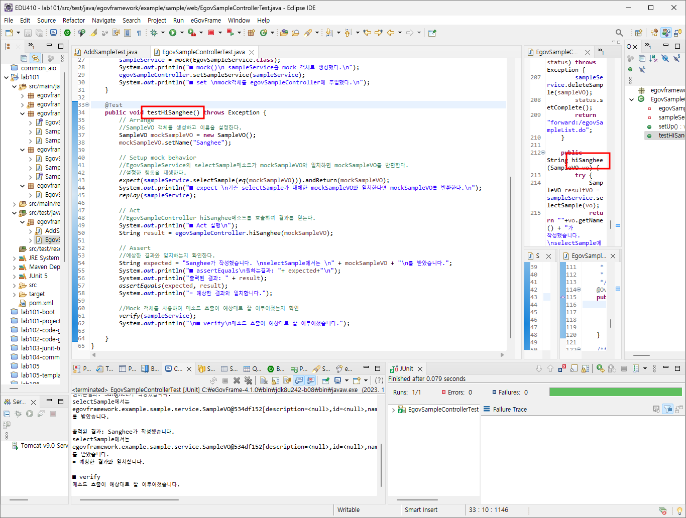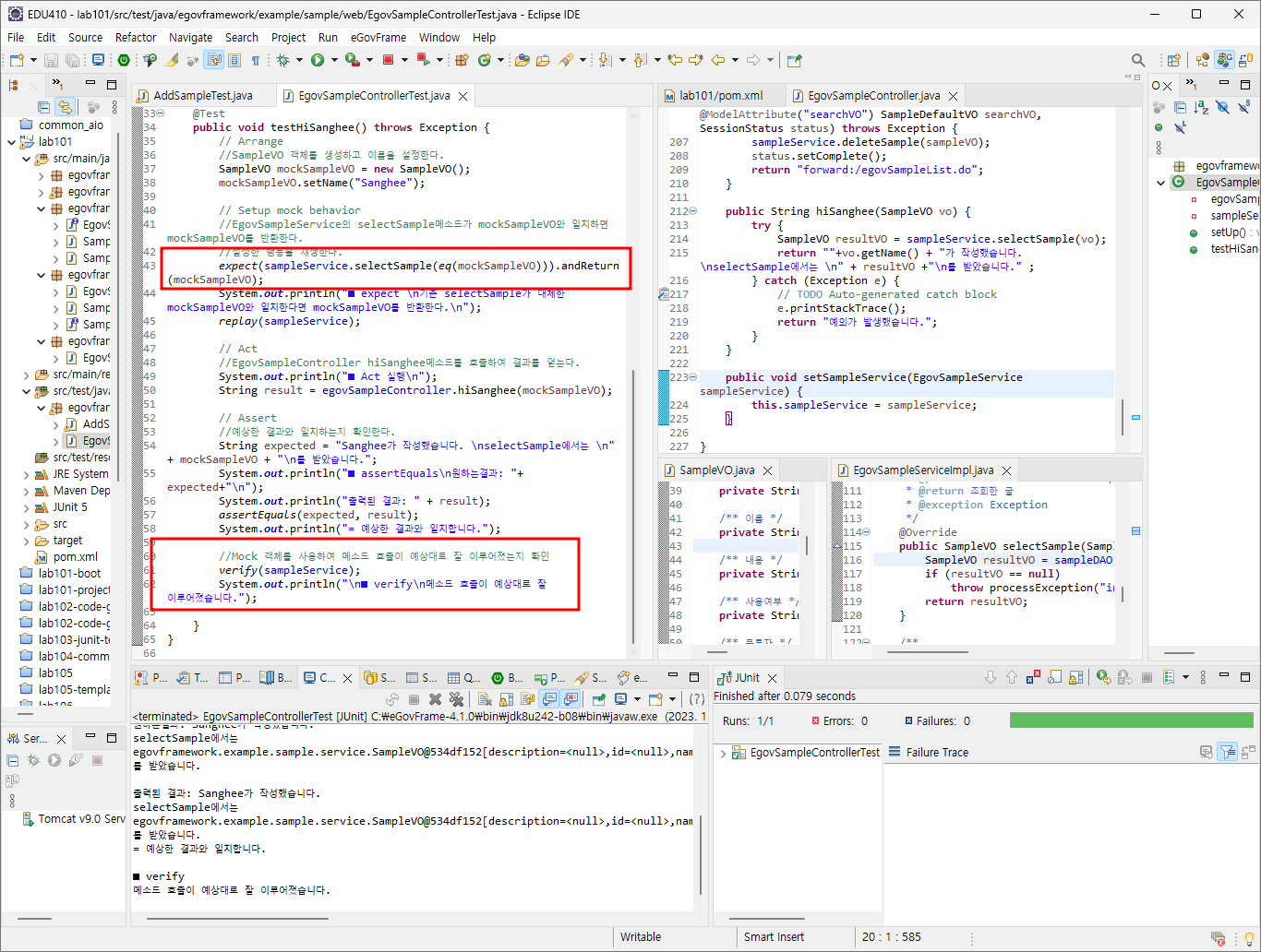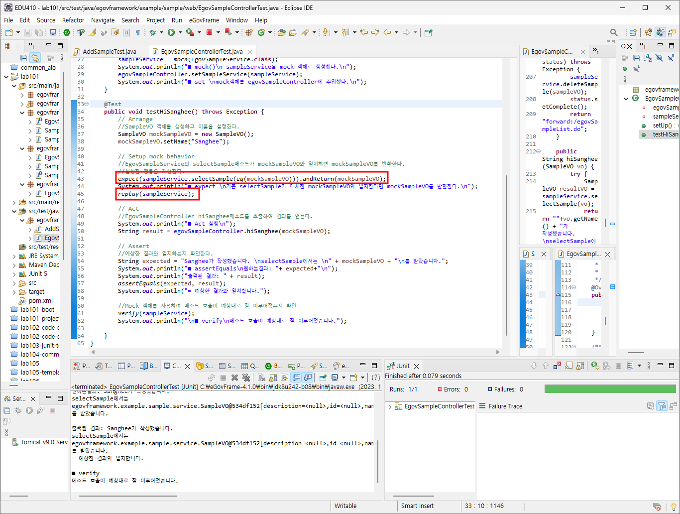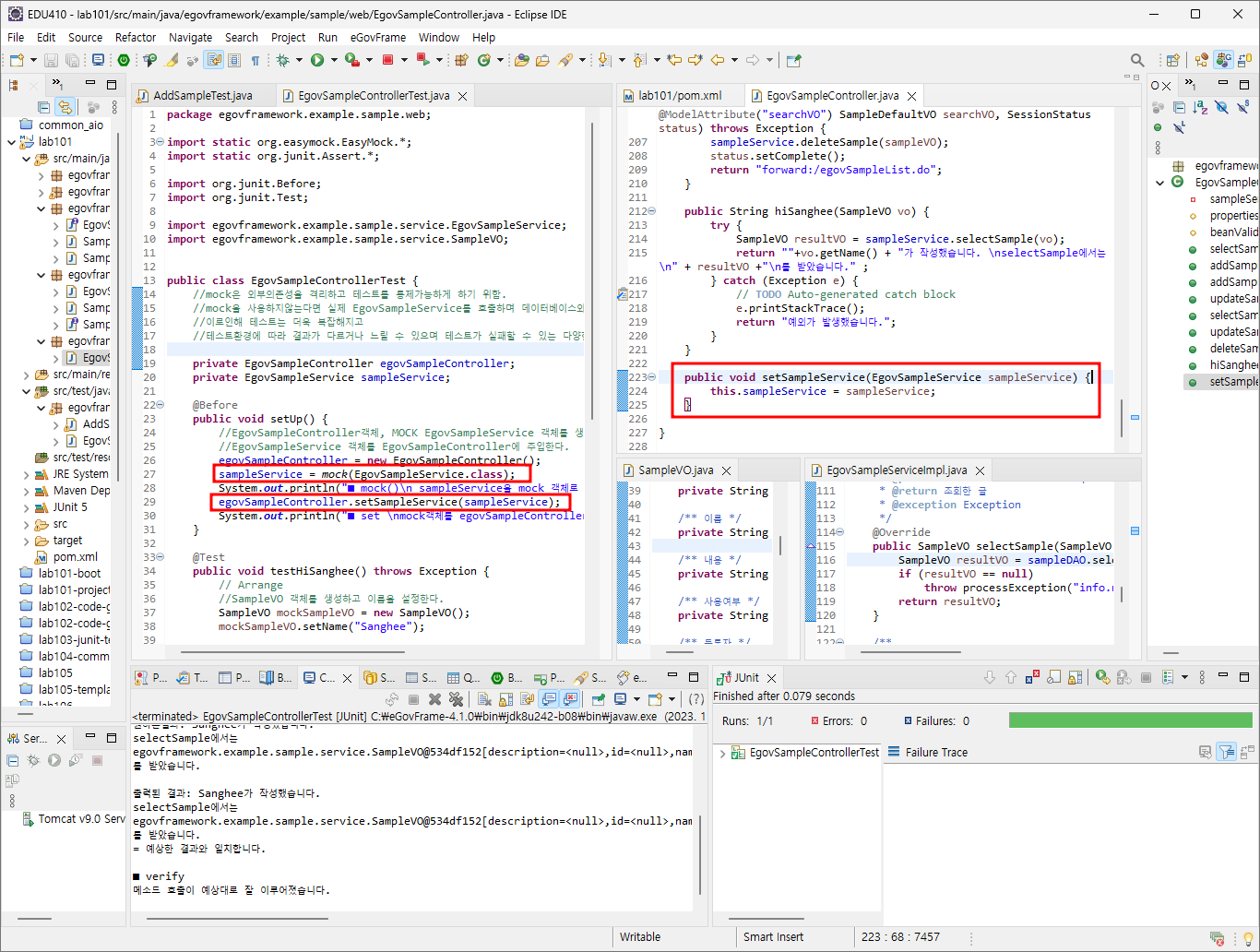 //mock을 사용하지않는다면 실제 EgovSampleService를 호출하며 데이터베이스와 통신하게 된다.