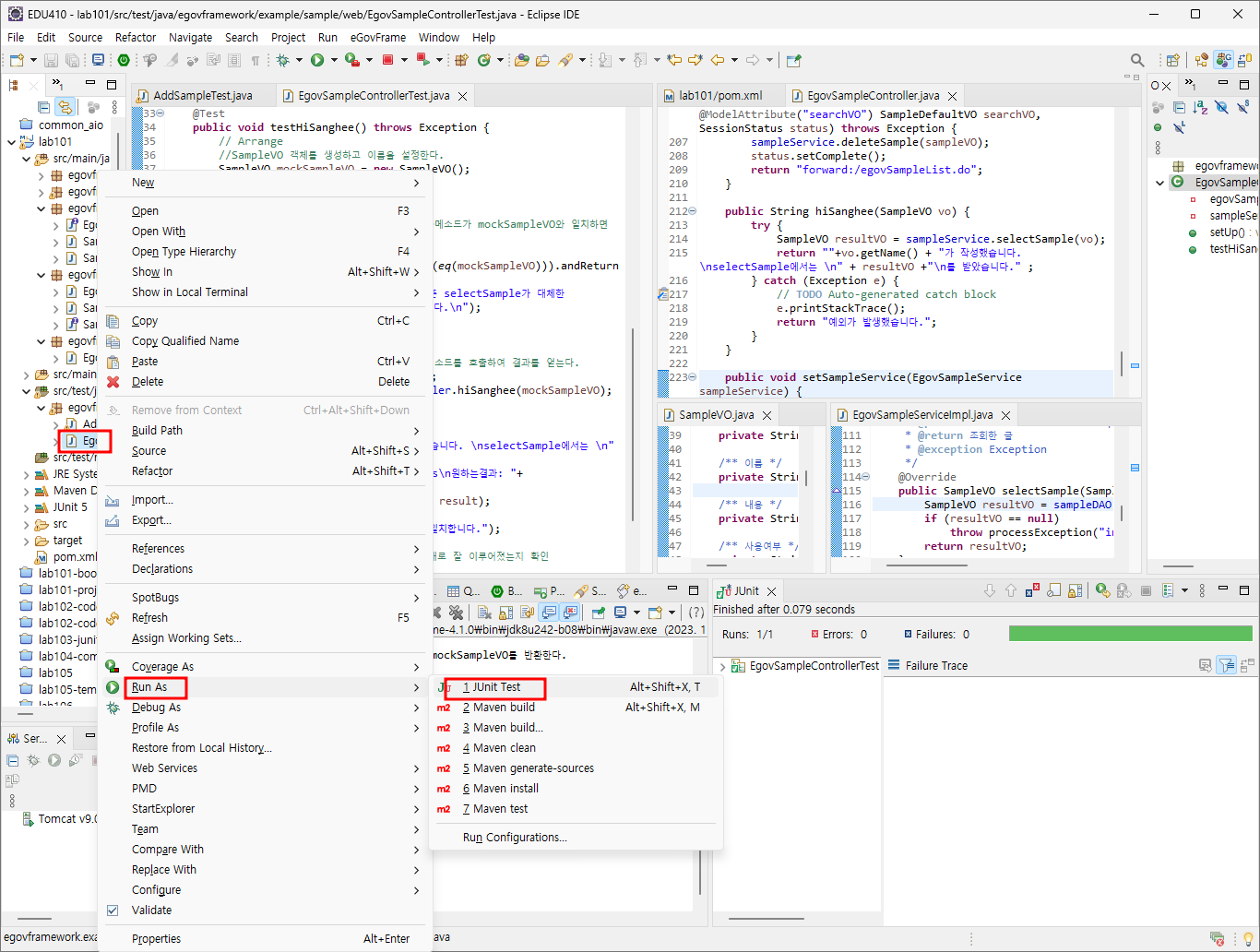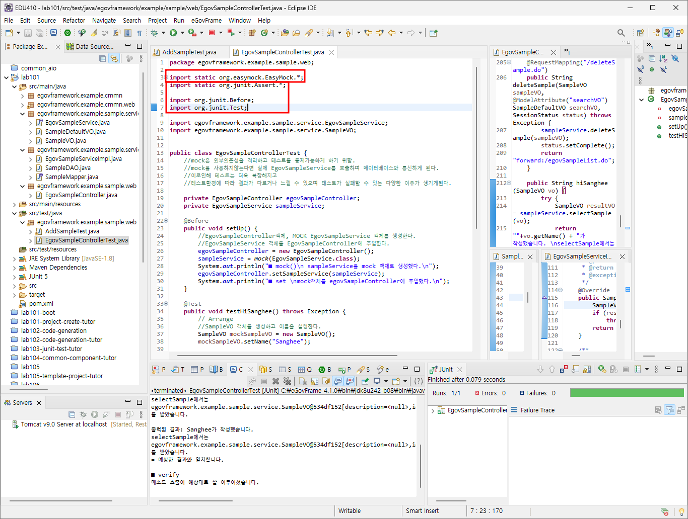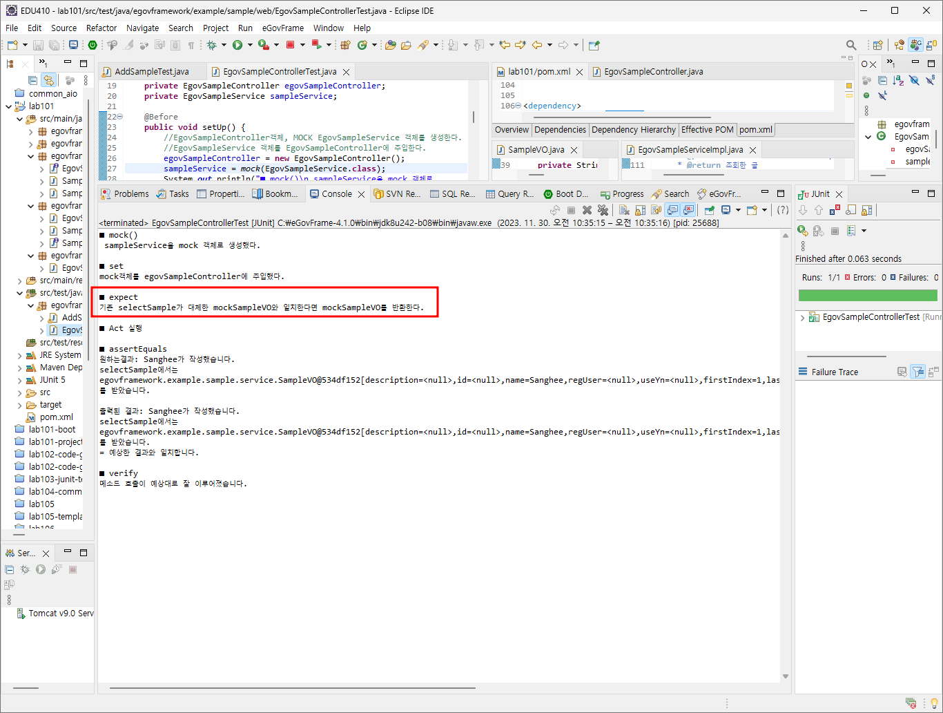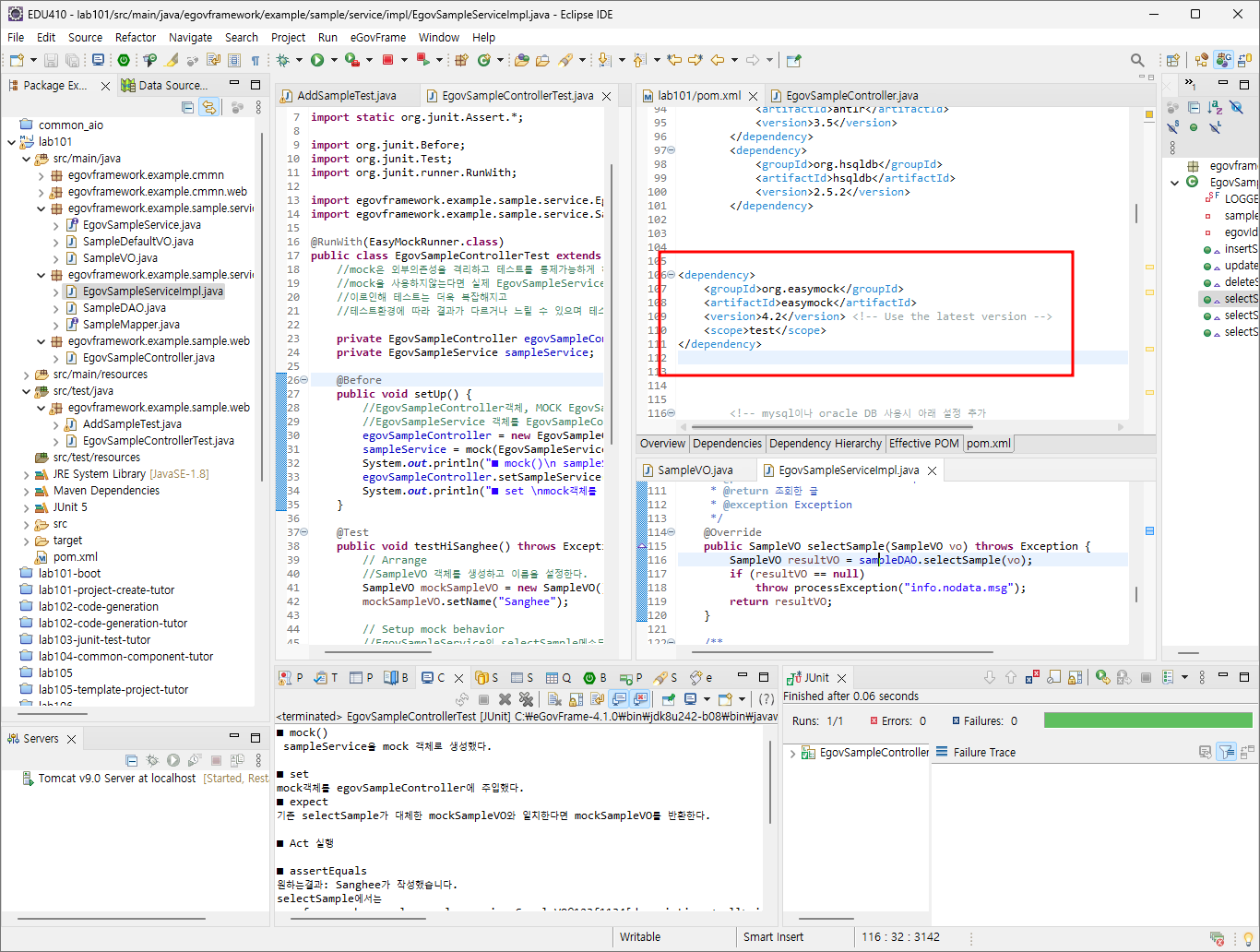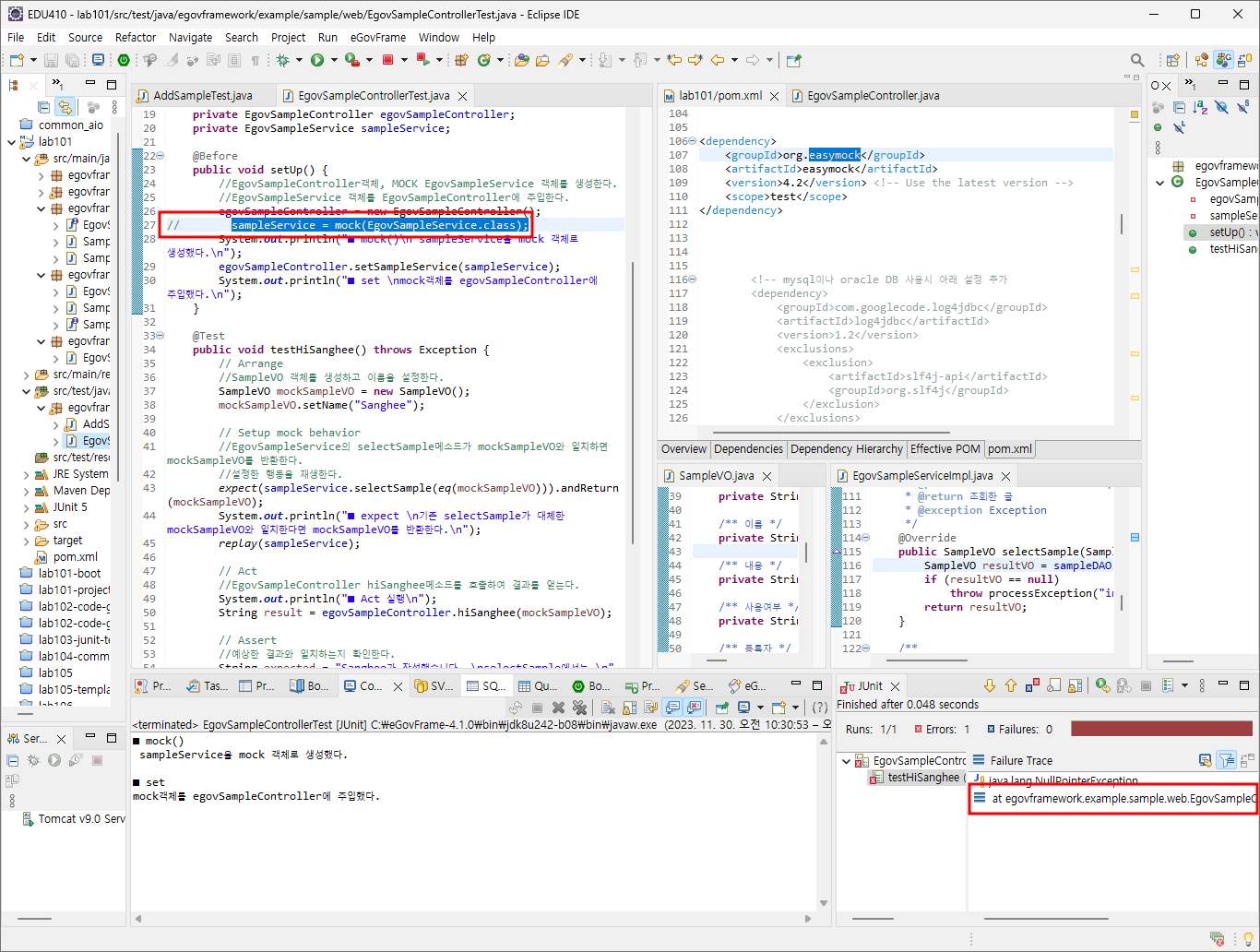 //mock을 사용하지않는다면 실제 EgovSampleService를 호출하며 데이터베이스와 통신하게 된다.