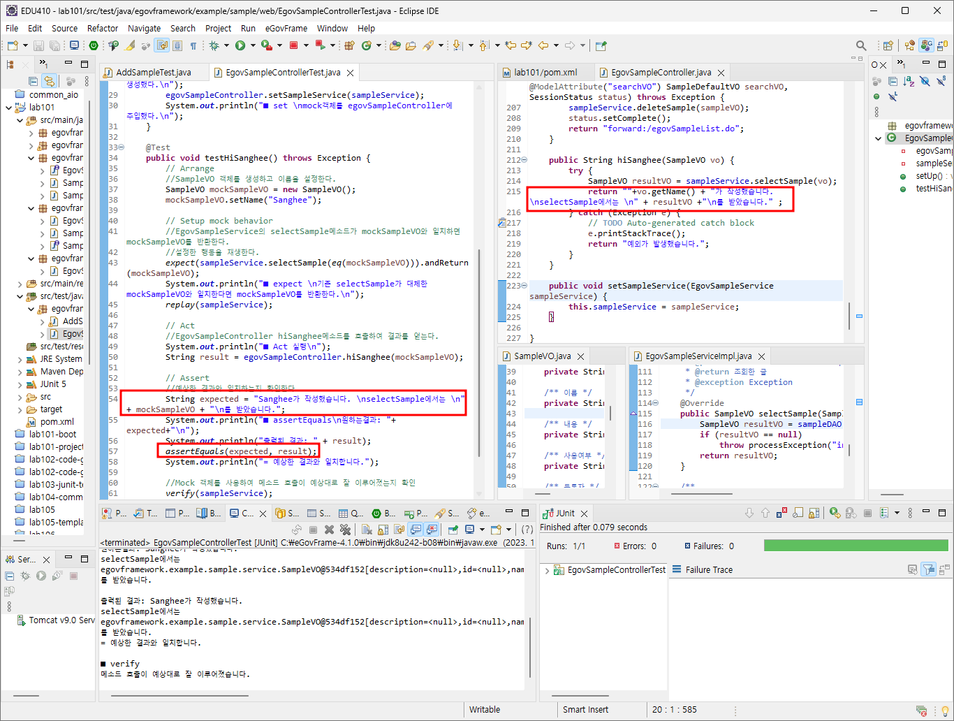 //EgovSampleController hiSanghee메소드를 호출하여 결과를 얻는다.