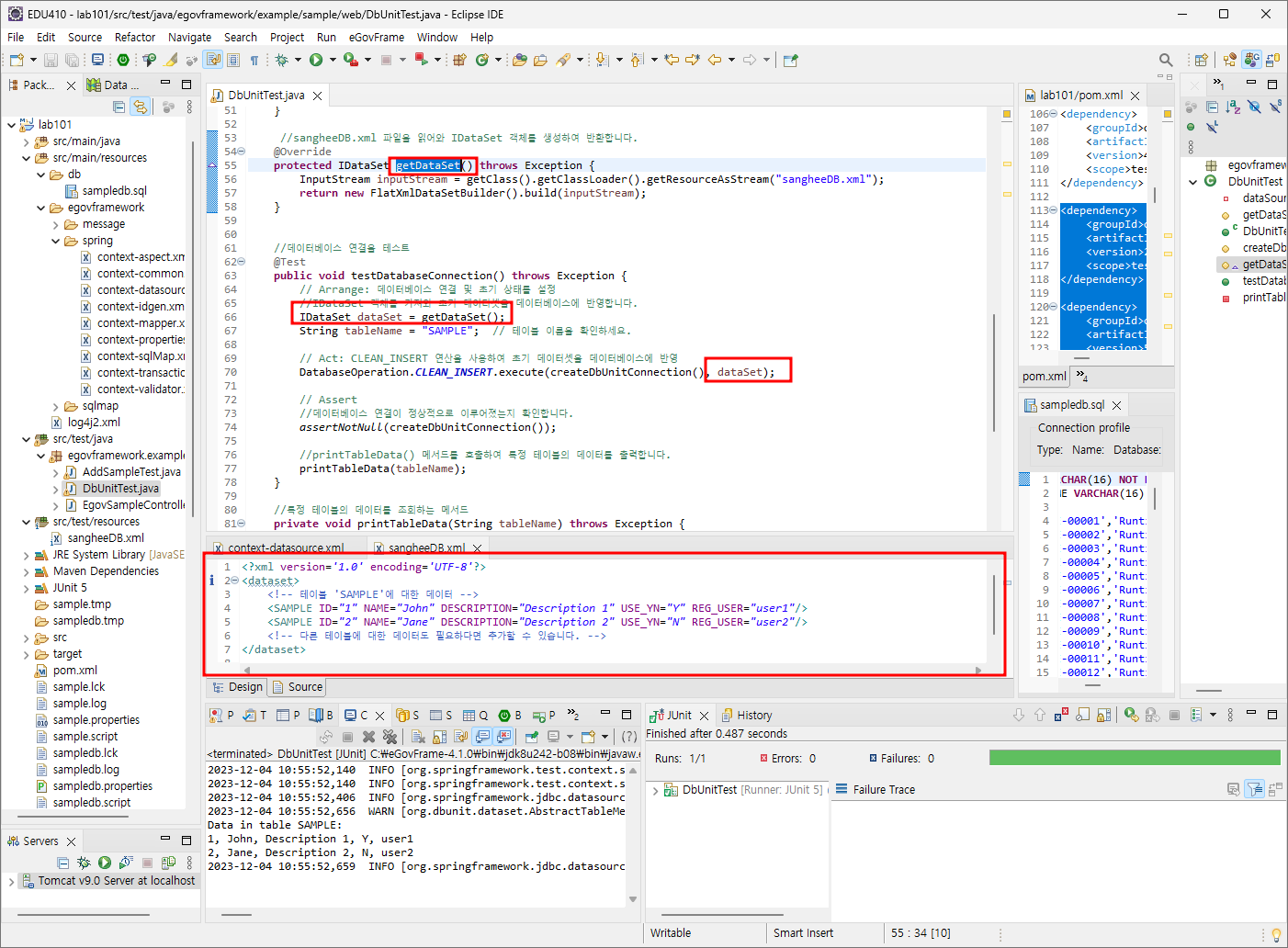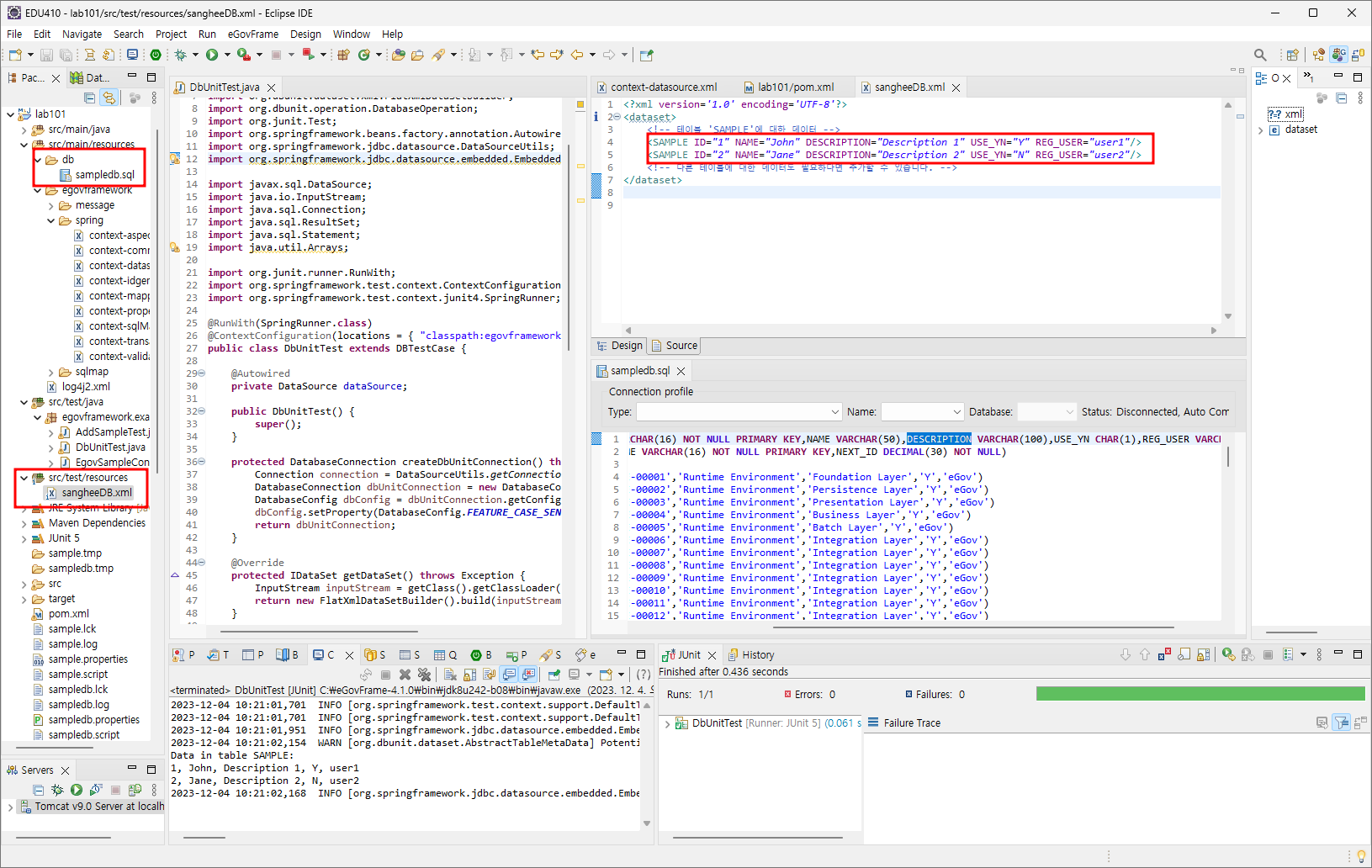 작성했던 xml 소스를 IDataSet객체로 생성해 초기 데이터베이스에 반영한뒤