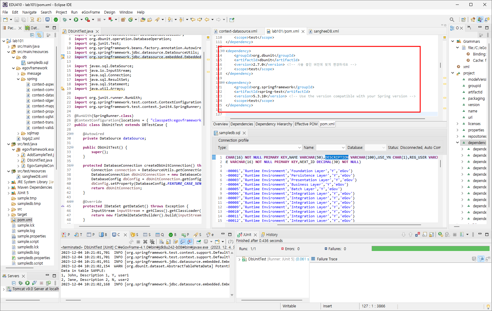 시작하기 앞서 dbunit과 spring-test 의존성을 추가하자.