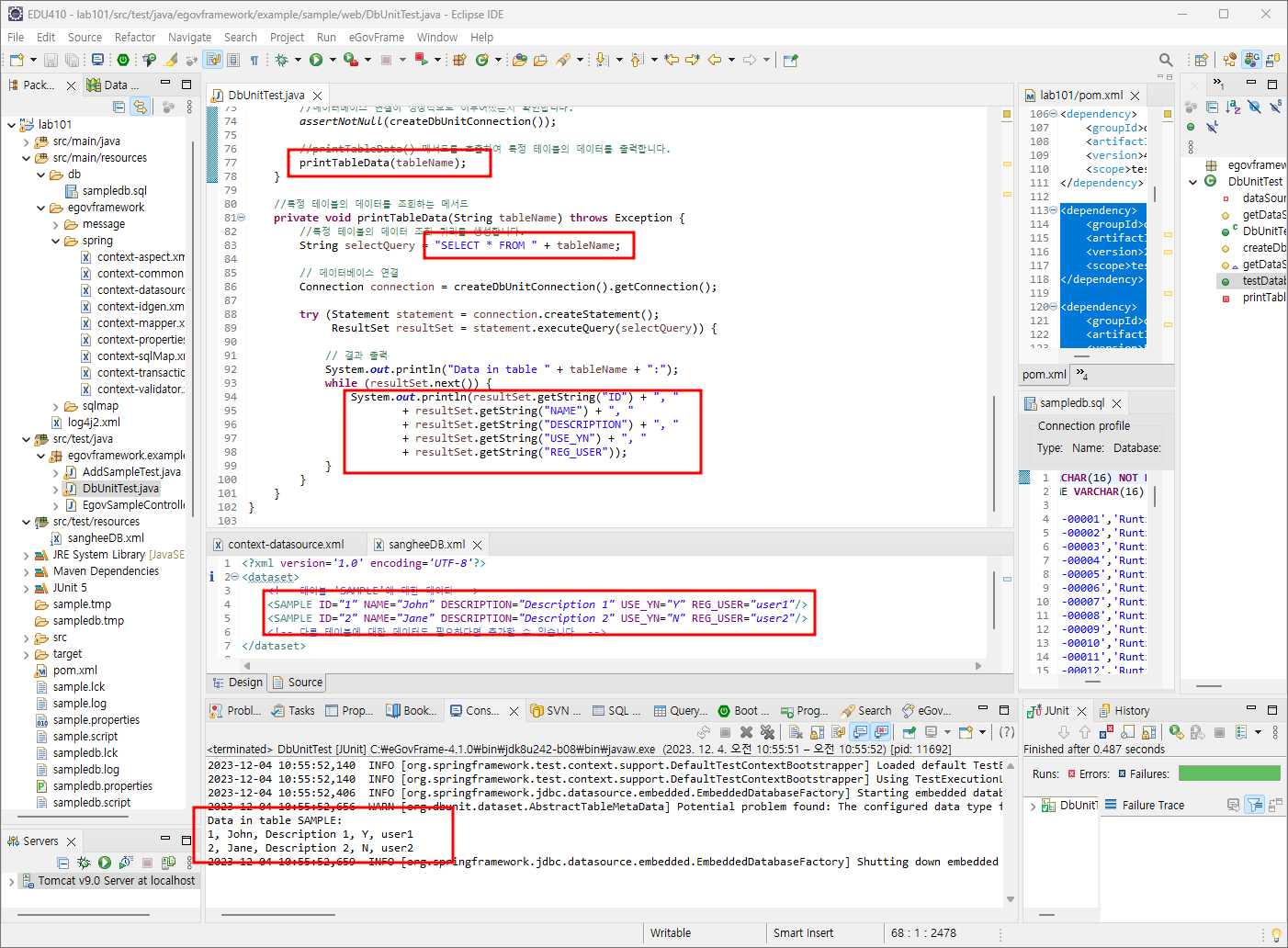 String tableName = "SAMPLE"; // 테이블 이름을 확인하세요.