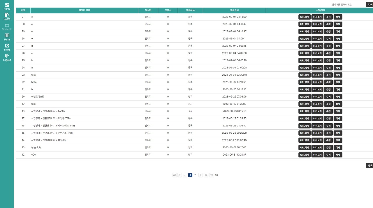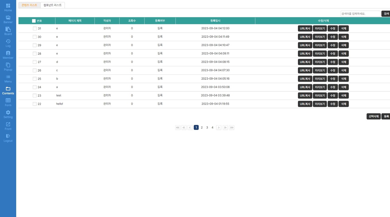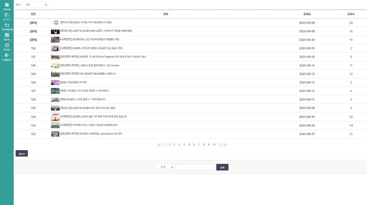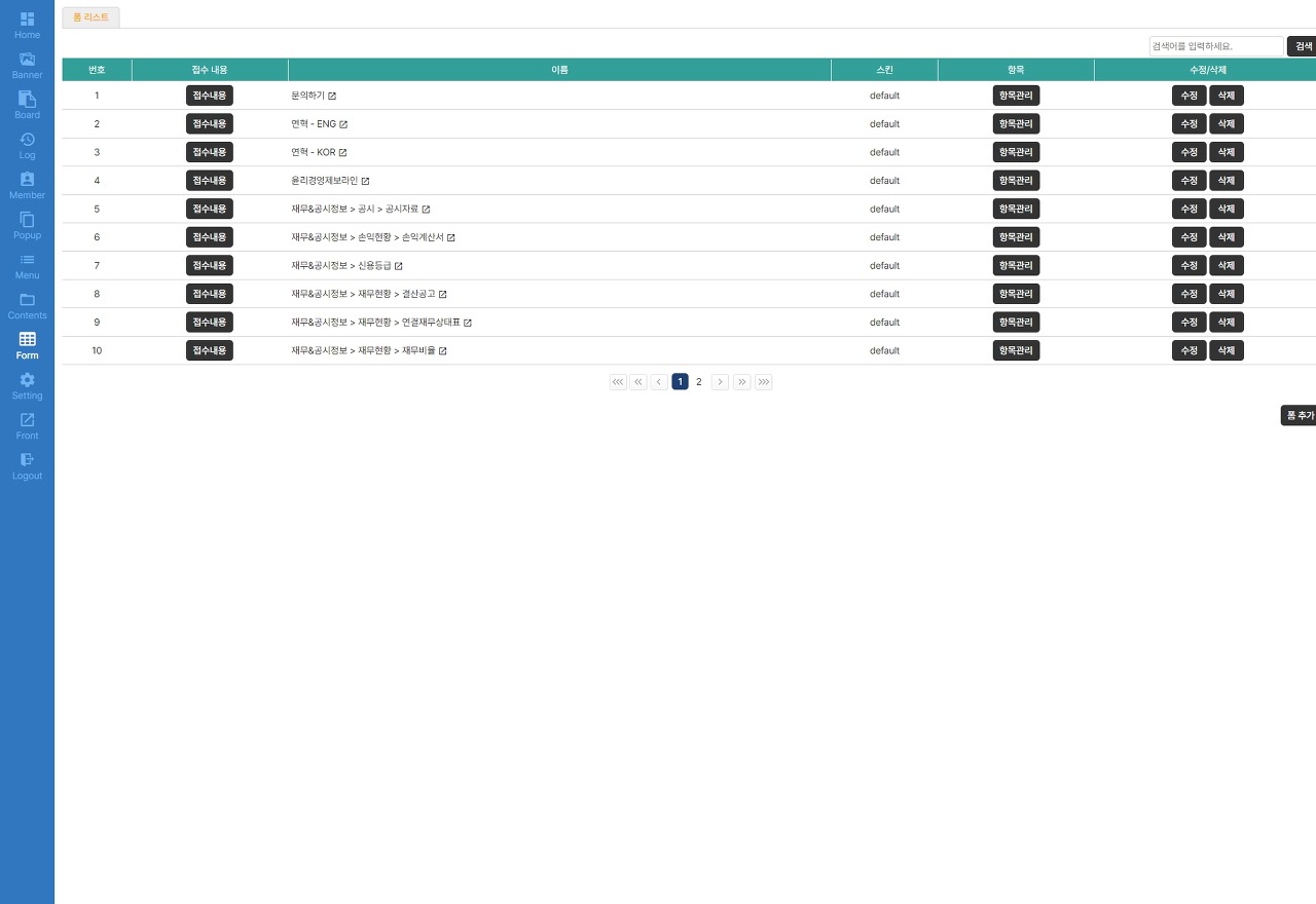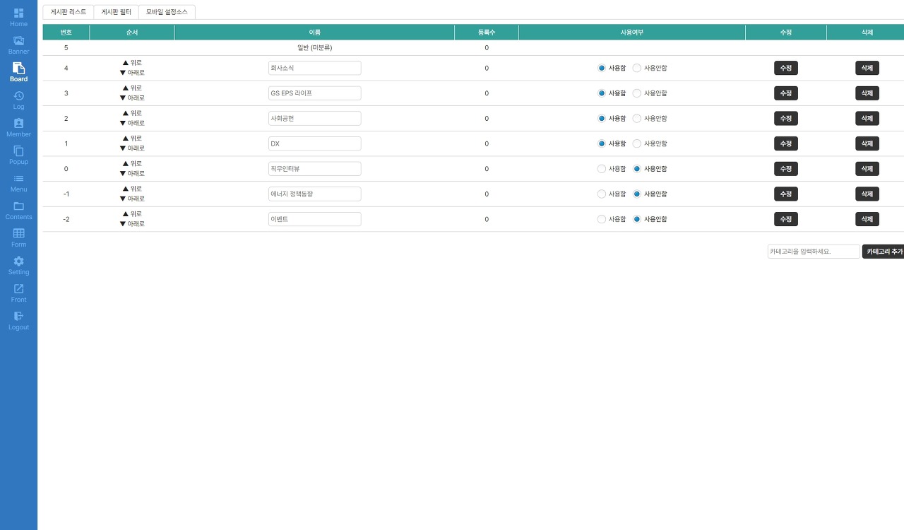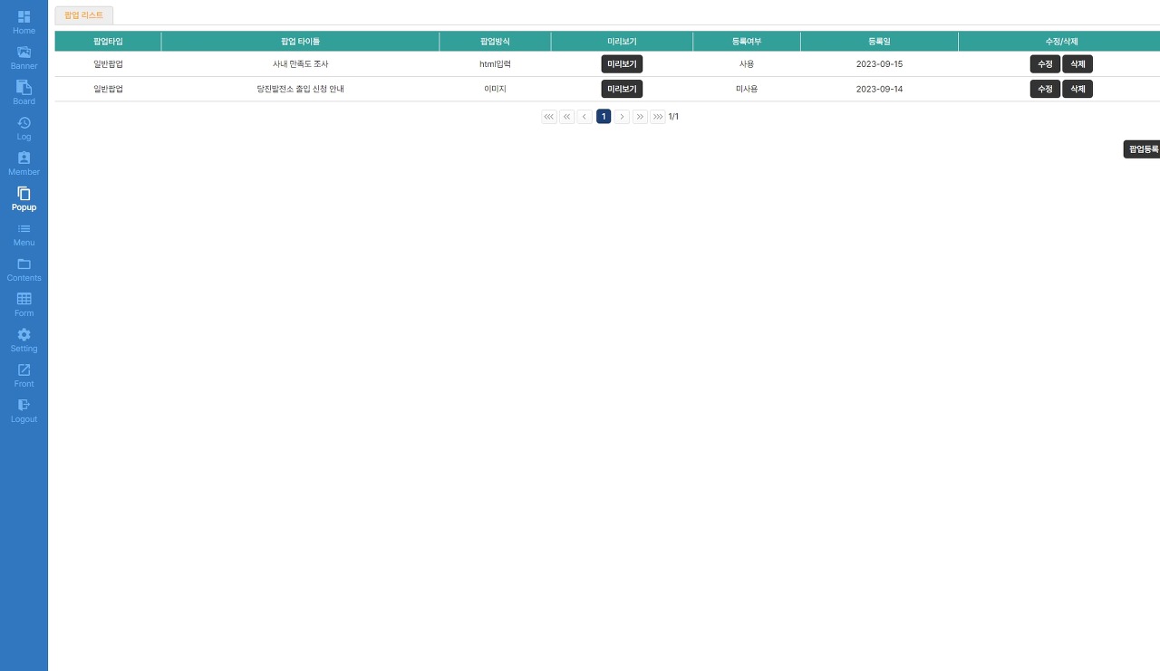 슈퍼/현업 관리자로 크게 나뉘며 홈페이지 관리, 회원관리 및 문의관리, 게시판관리 등의 기능을 가집니다.