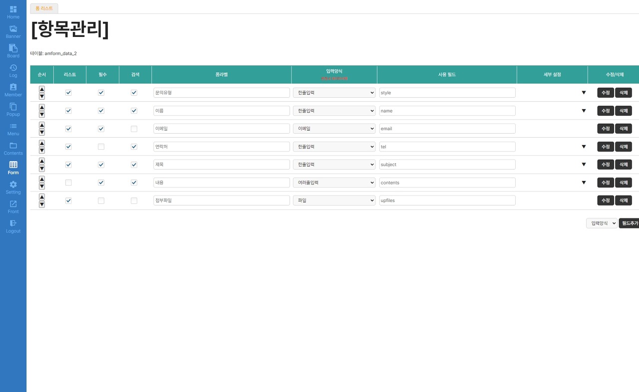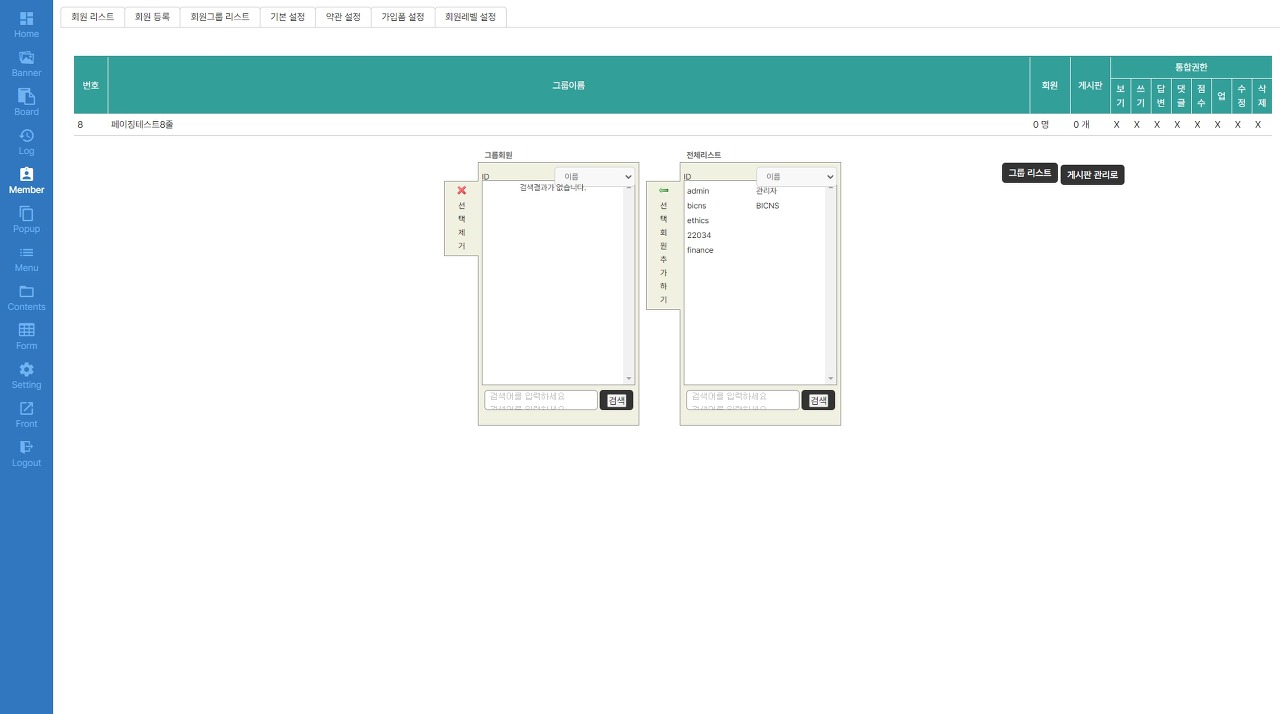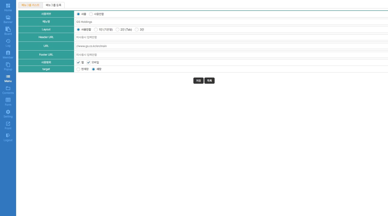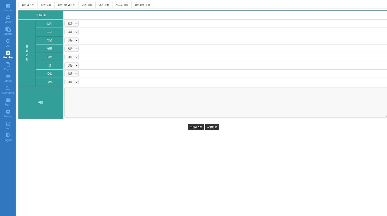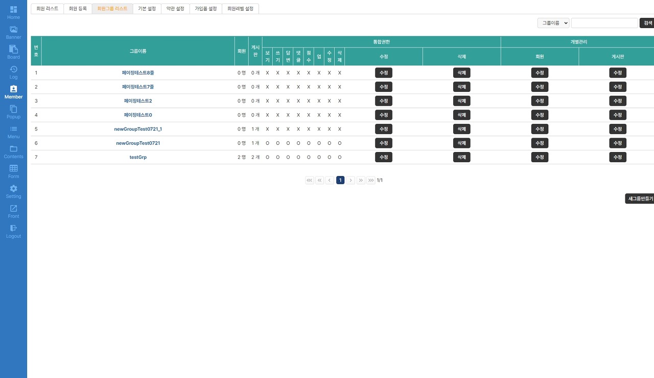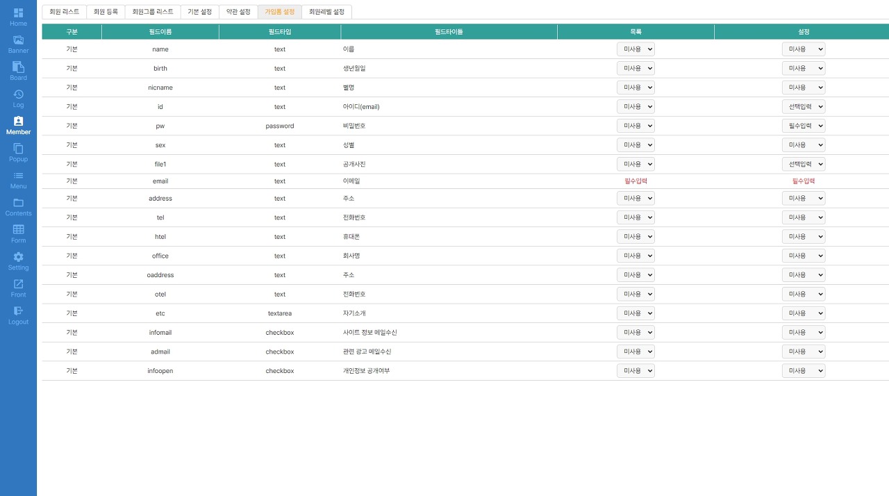 슈퍼/현업 관리자로 크게 나뉘며 홈페이지 관리, 회원관리 및 문의관리, 게시판관리 등의 기능을 가집니다.