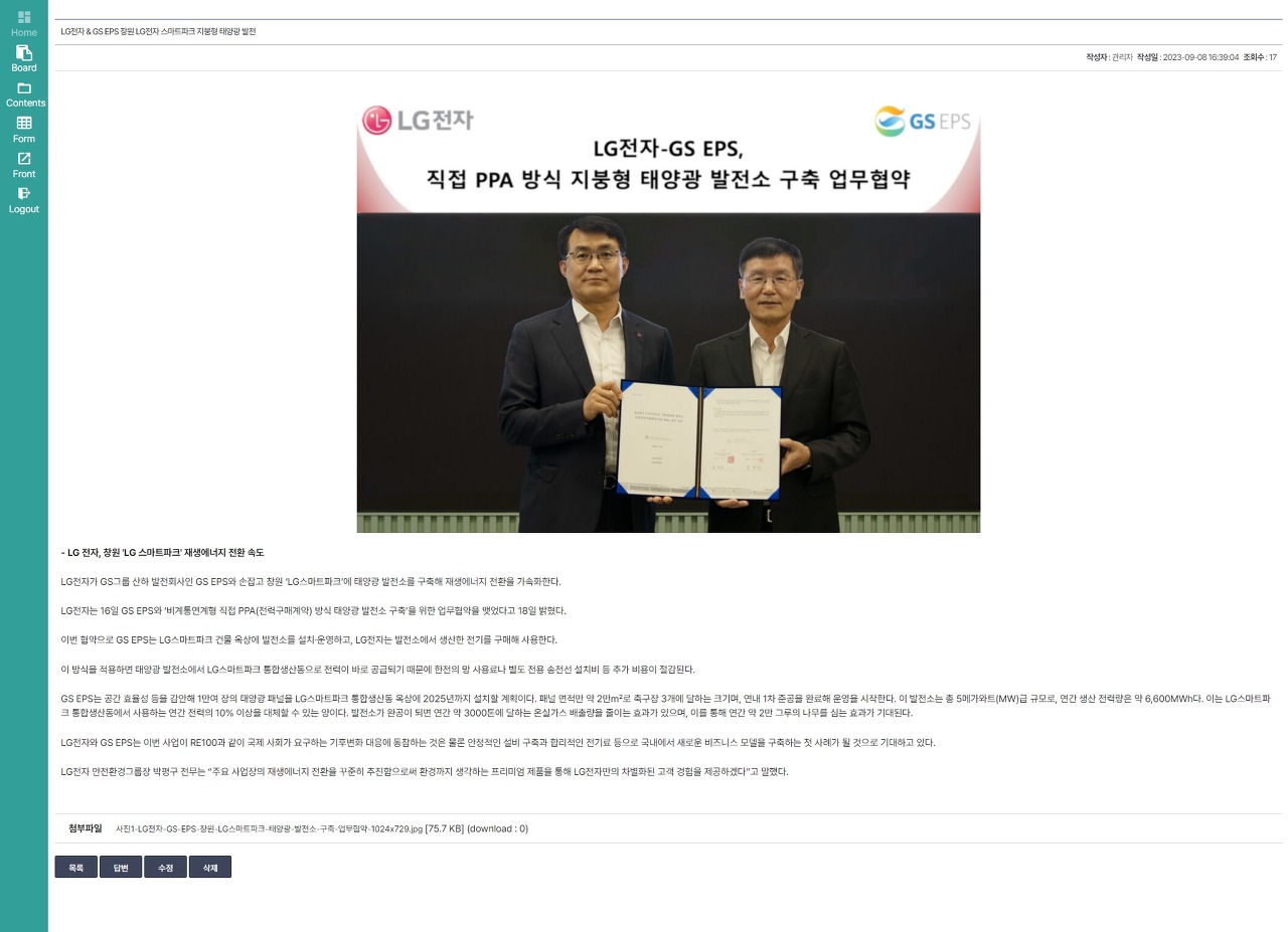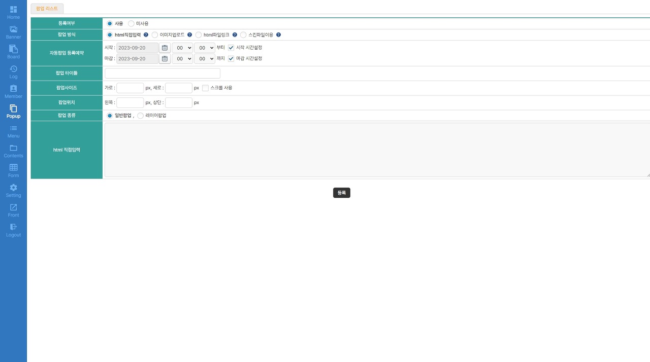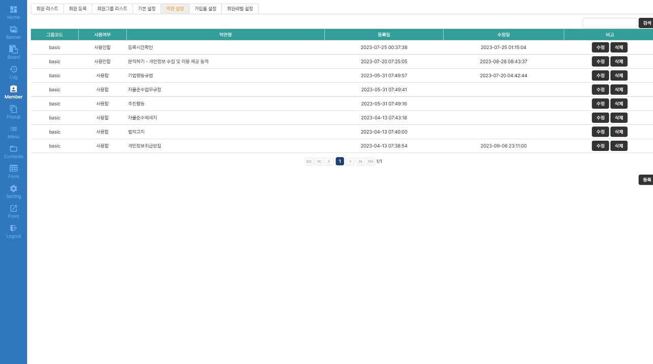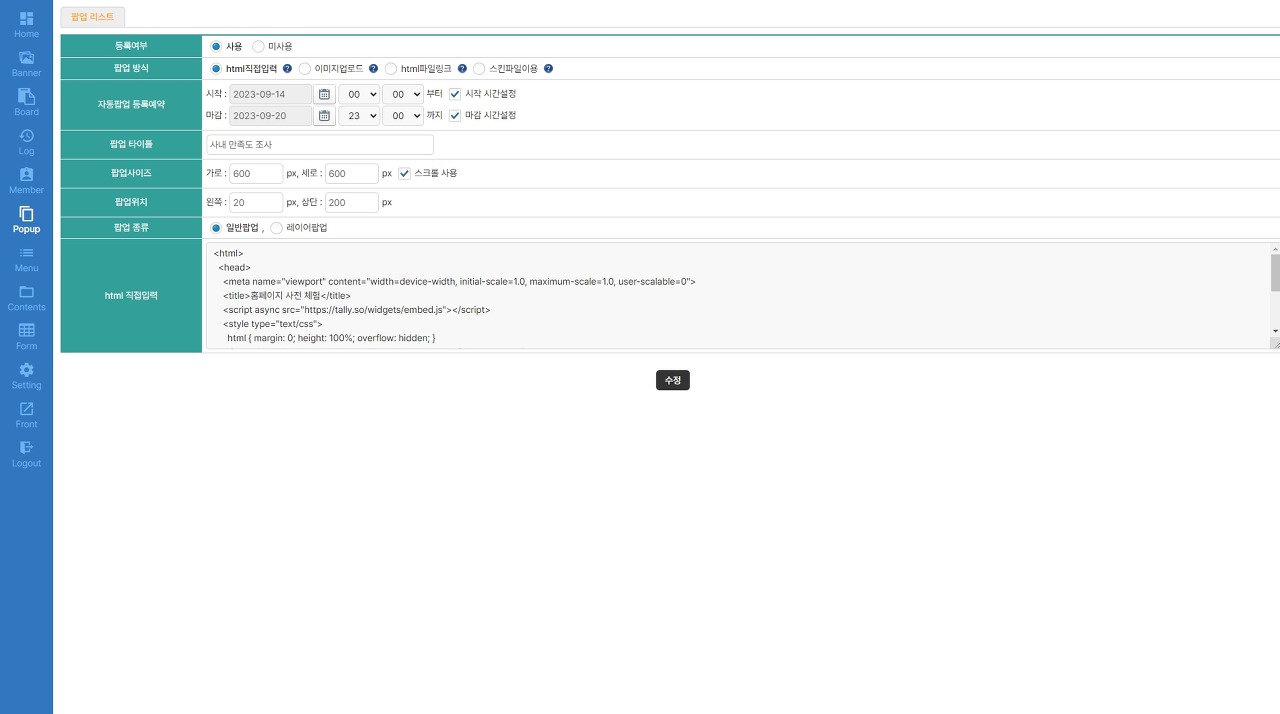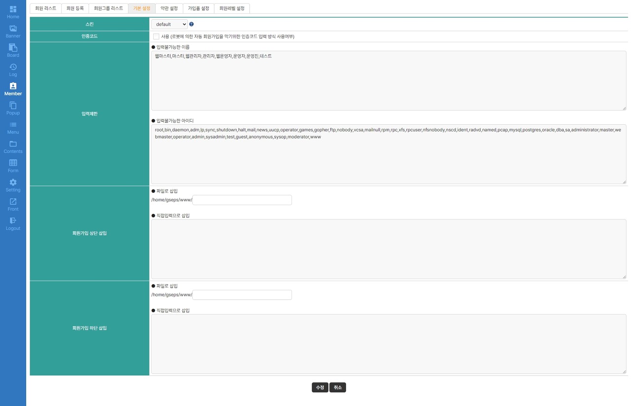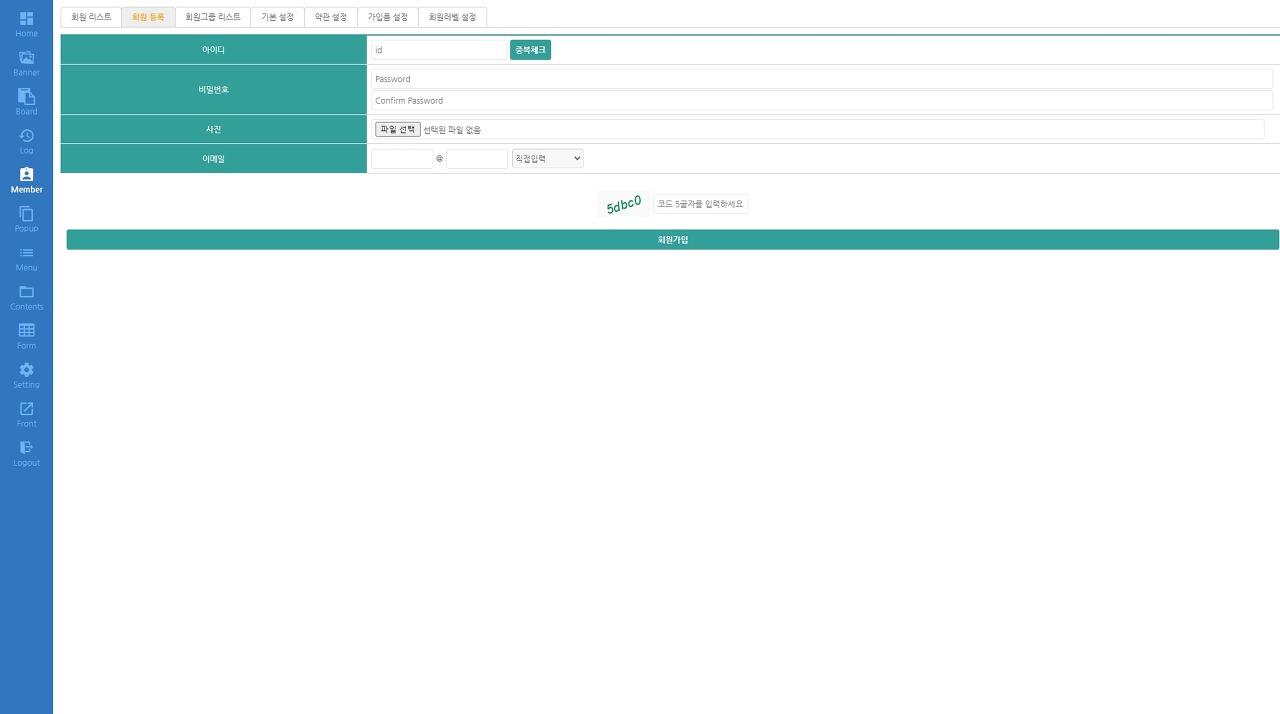 슈퍼/현업 관리자로 크게 나뉘며 홈페이지 관리, 회원관리 및 문의관리, 게시판관리 등의 기능을 가집니다.