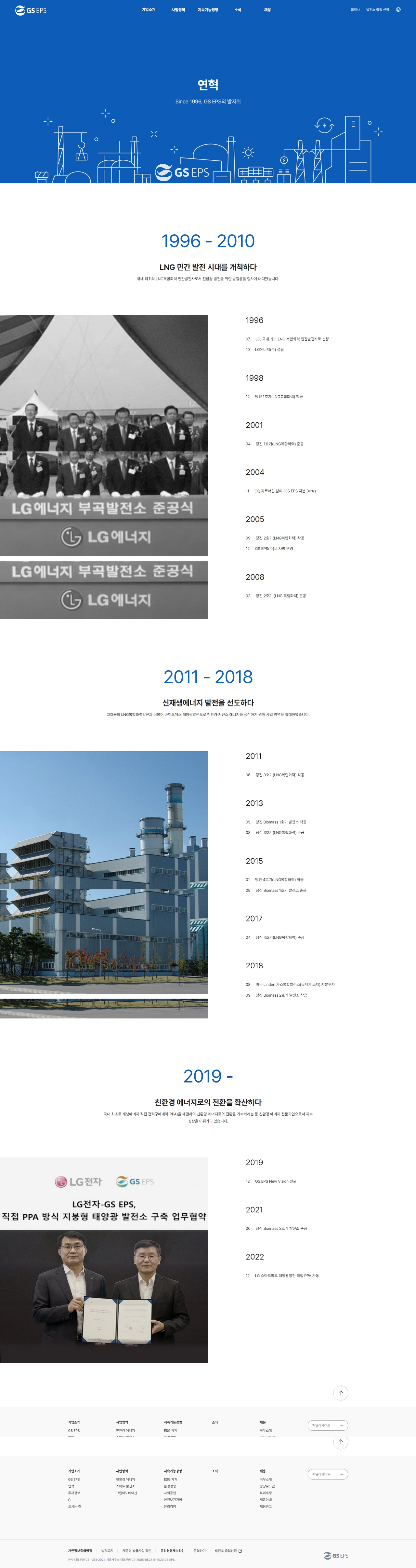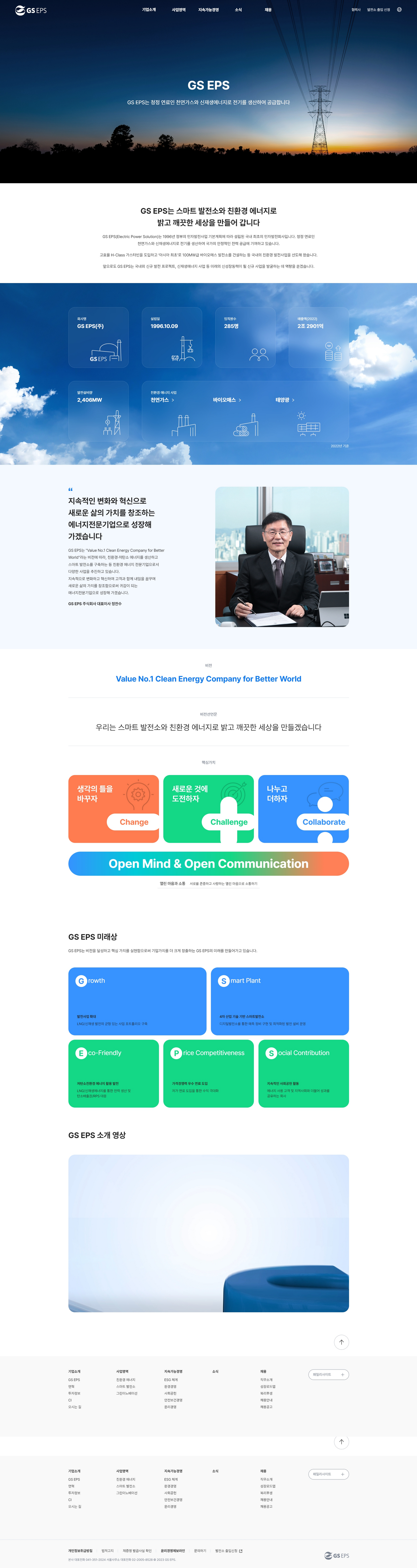 GS EPS(Electric Power Solution)는 1996년 정부의 민자발전사업 기본계획에 따라 설립된 국내 최초의 민자발전회사입니다. 청정 연료인 천연가스와 신재생에너지로 전기를 생산하여 국가의 안정적인 전력 공급에 기여하고 있습니다.