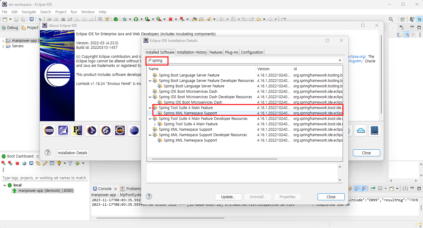 *전자정부프레임워크의 eclipse에는 sts가 기본 세팅되어있다.