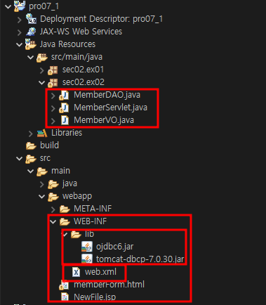 서블릿과 다른 일반 클래스들이 위치