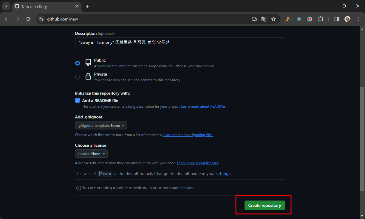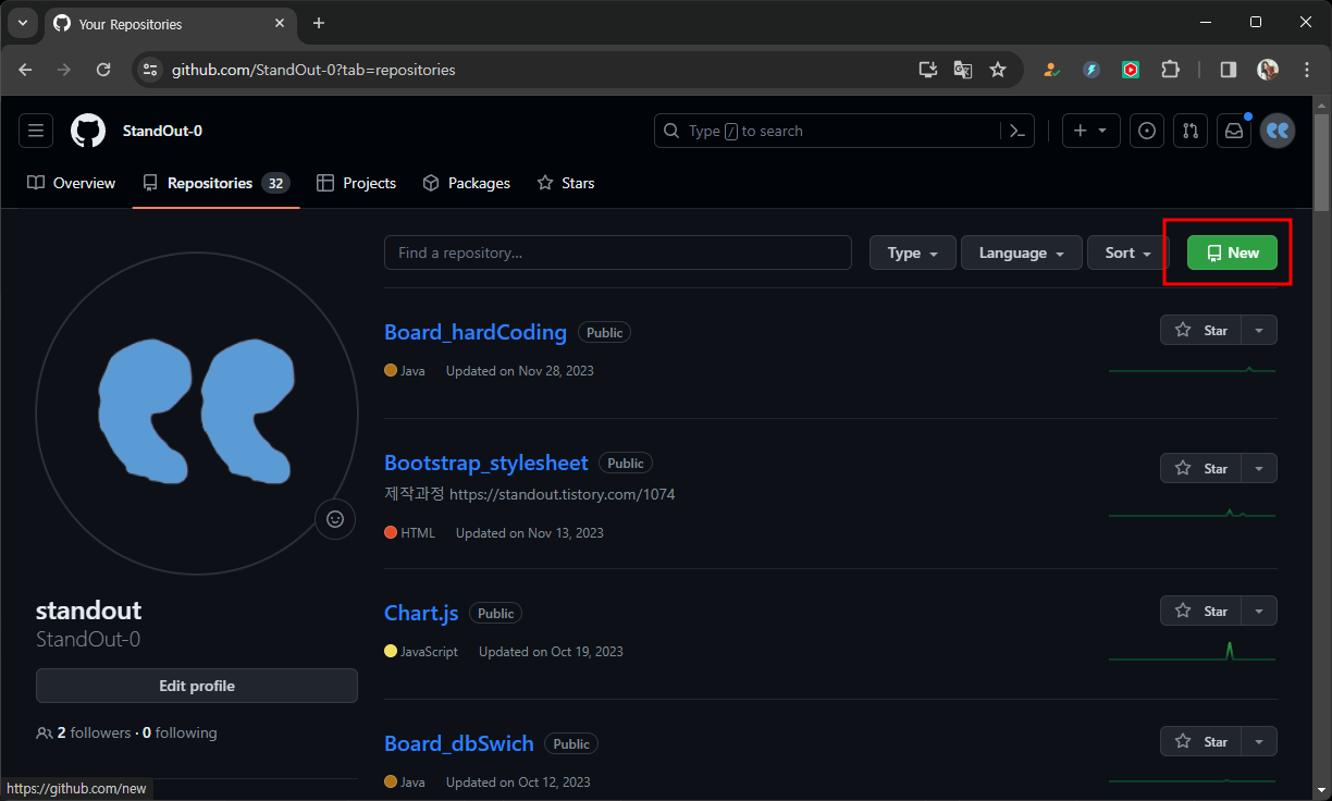 새 레퍼지토리만들기