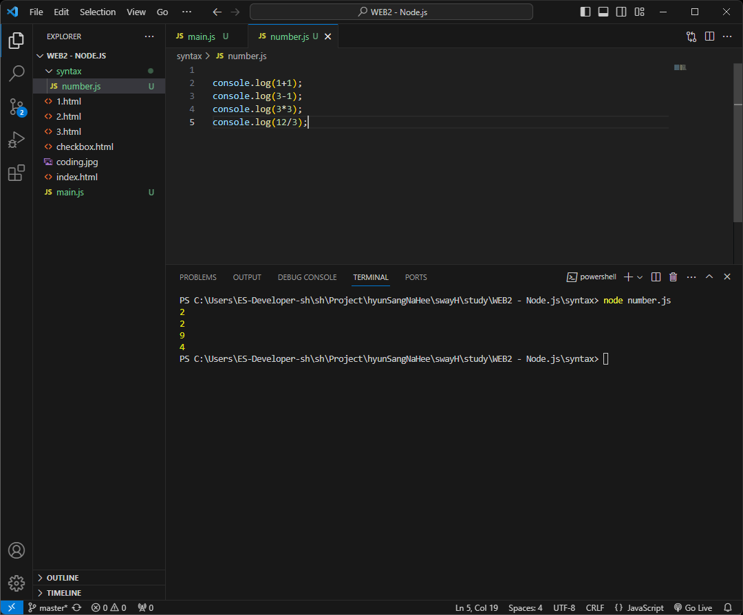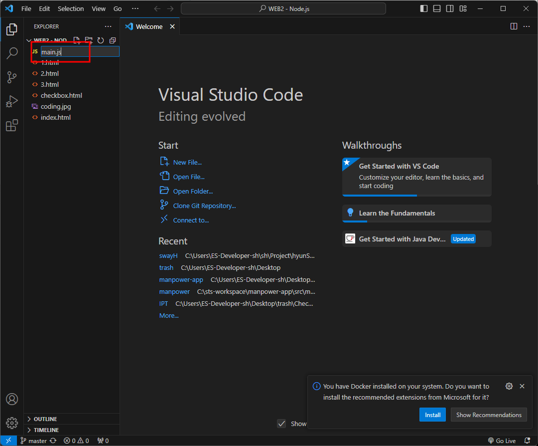 소스코드를 복붙해 클론받은 프로젝트 내에서 main.js파일을 생성하여 붙여넣는다.