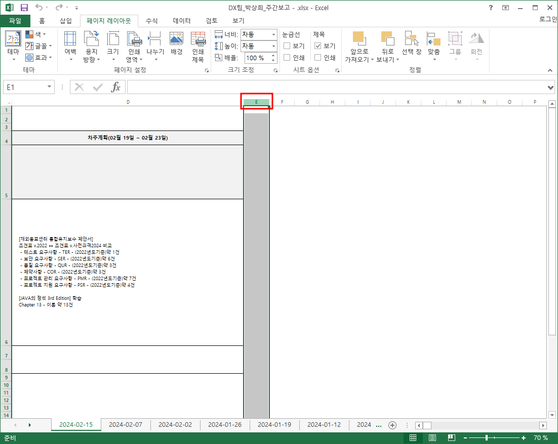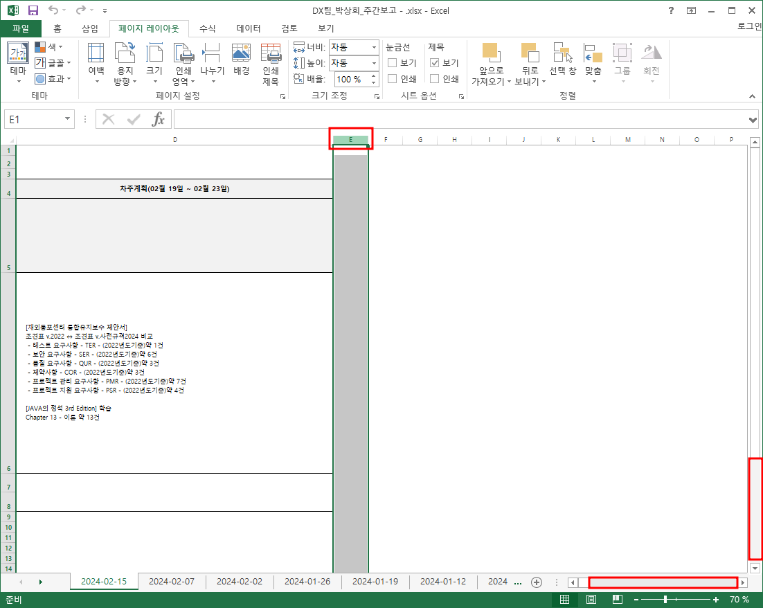 수령받은 엑셀폼에 매주 주간보고를 작성할때 아쉬운점을 보완했었다.