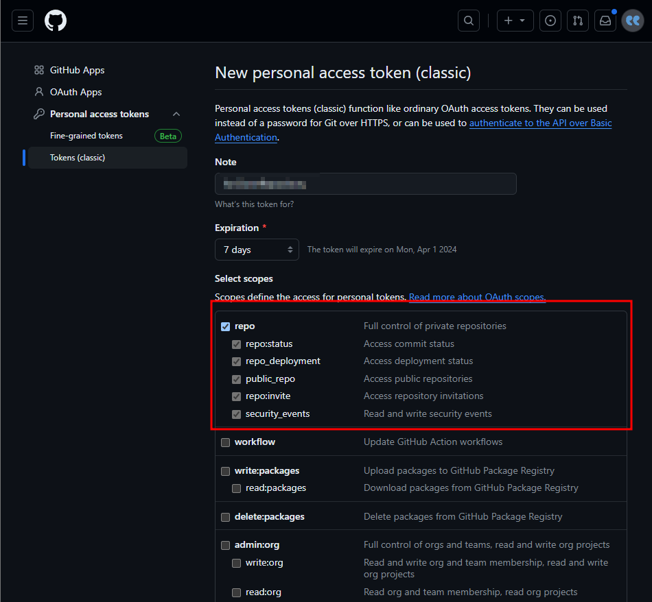 깃 - 설정- 관리자설정 토큰생성 - 이름입력 repo, adminb:repo_hook 선택 - Generate token 완료, 복사하여 잘 메모. 분실시 재발급받아야한다.