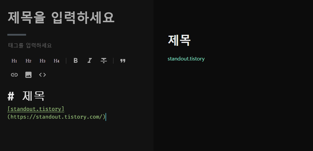 특별한 표식이나 태그없이 #나 *등으로 작성.
