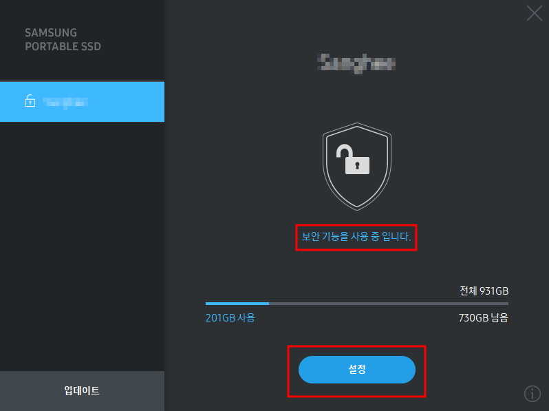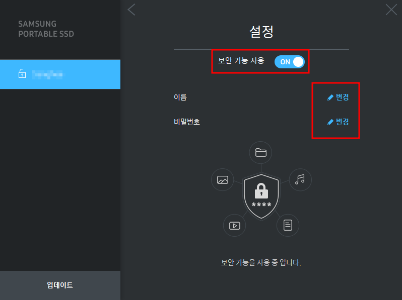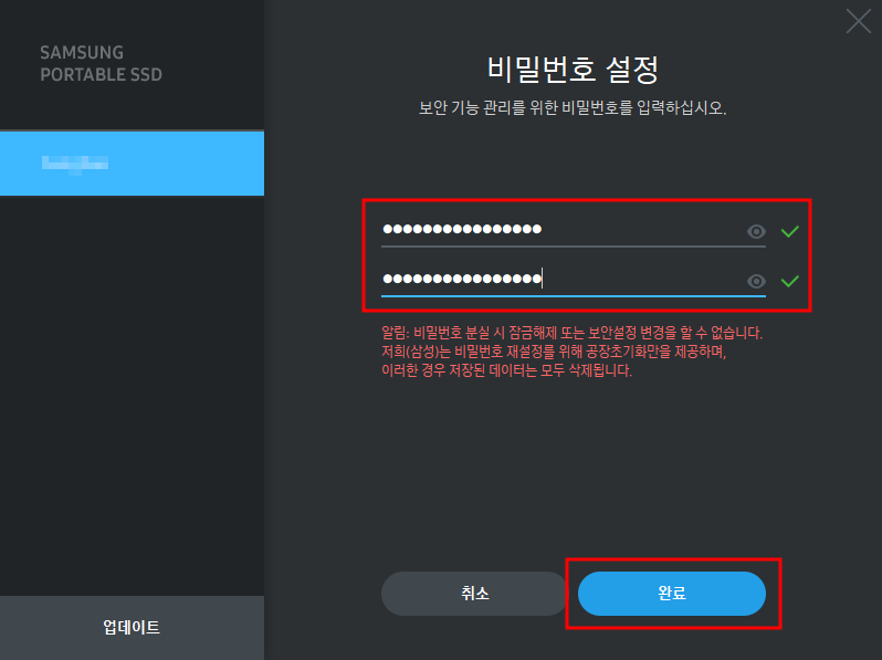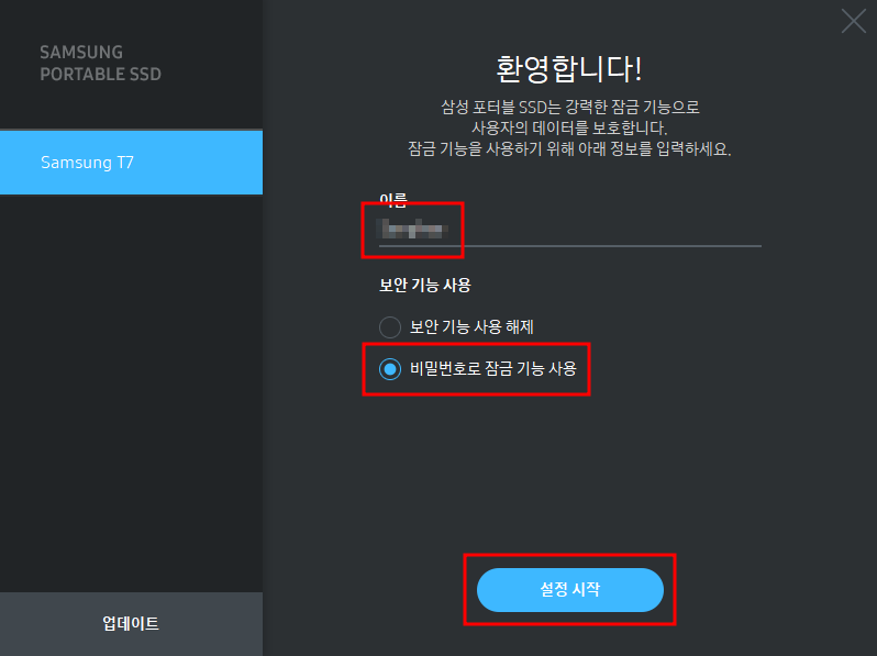 이름지정 - 비밀번호로 잠금기능사용 - 설정시작 - 비밀번호설정 - 완료