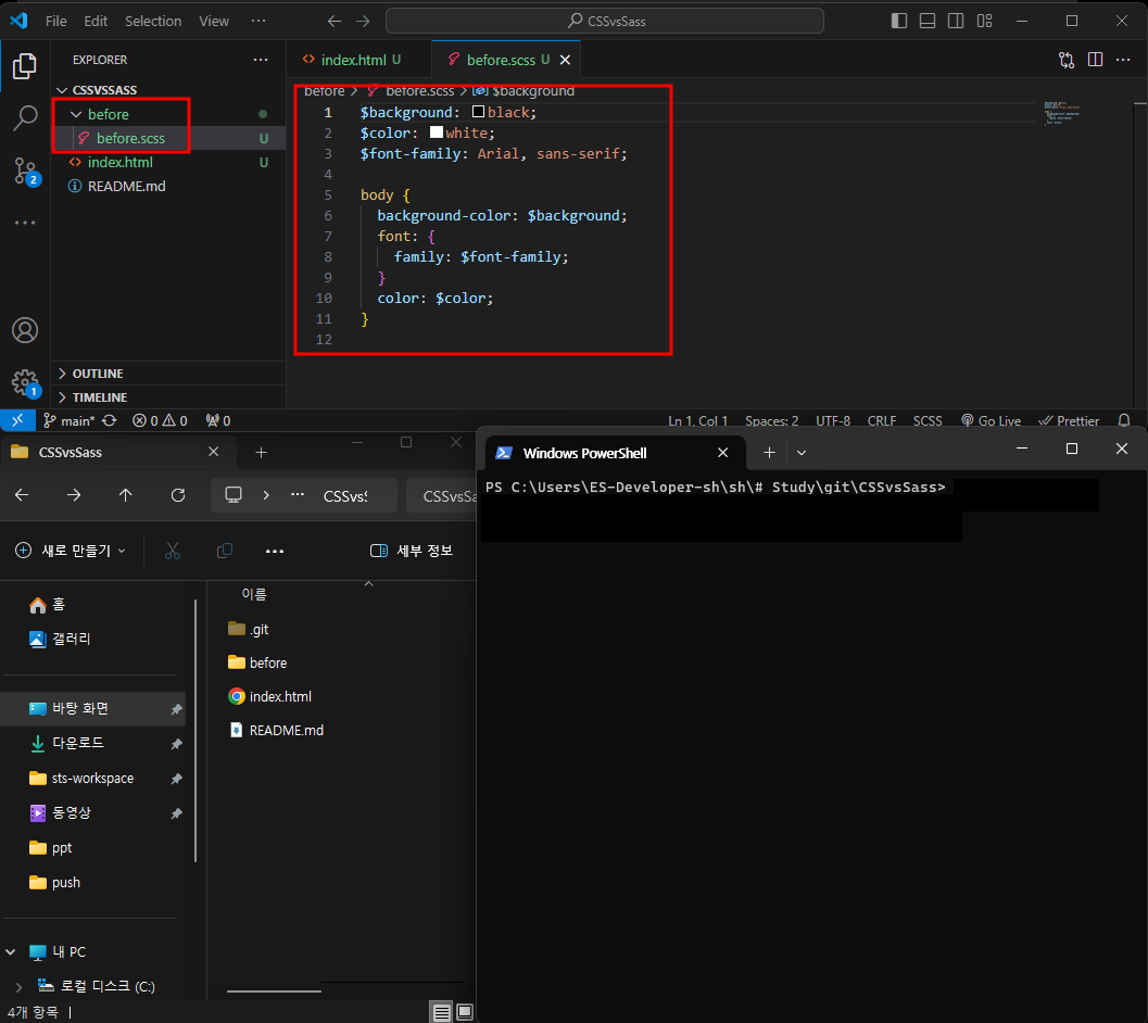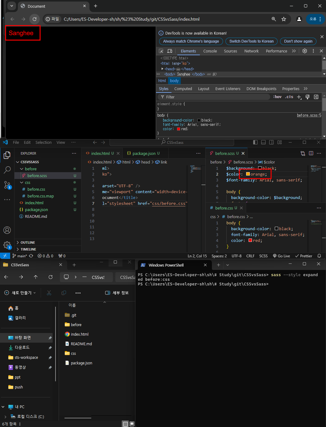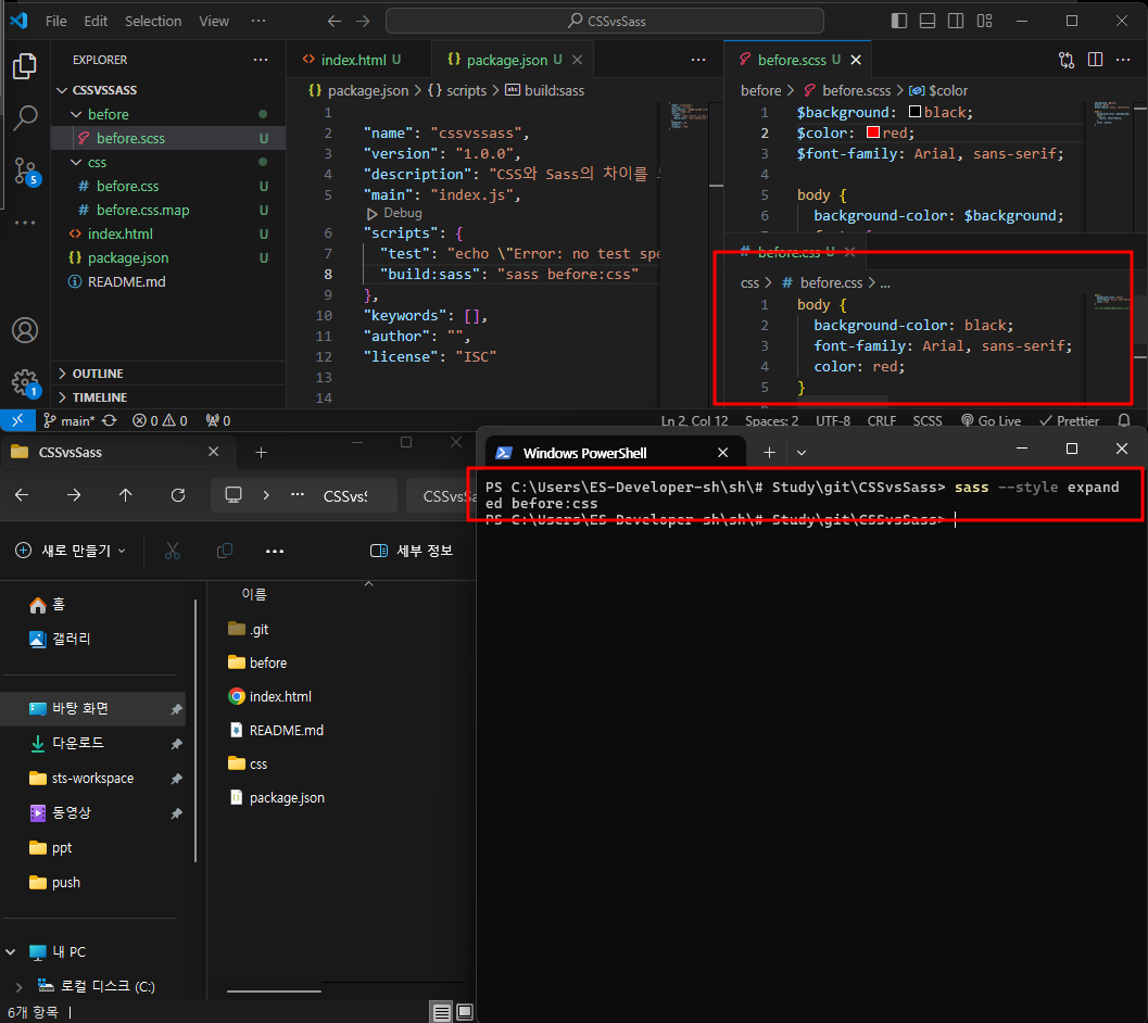 scss와 css를 열어 비교해보자.