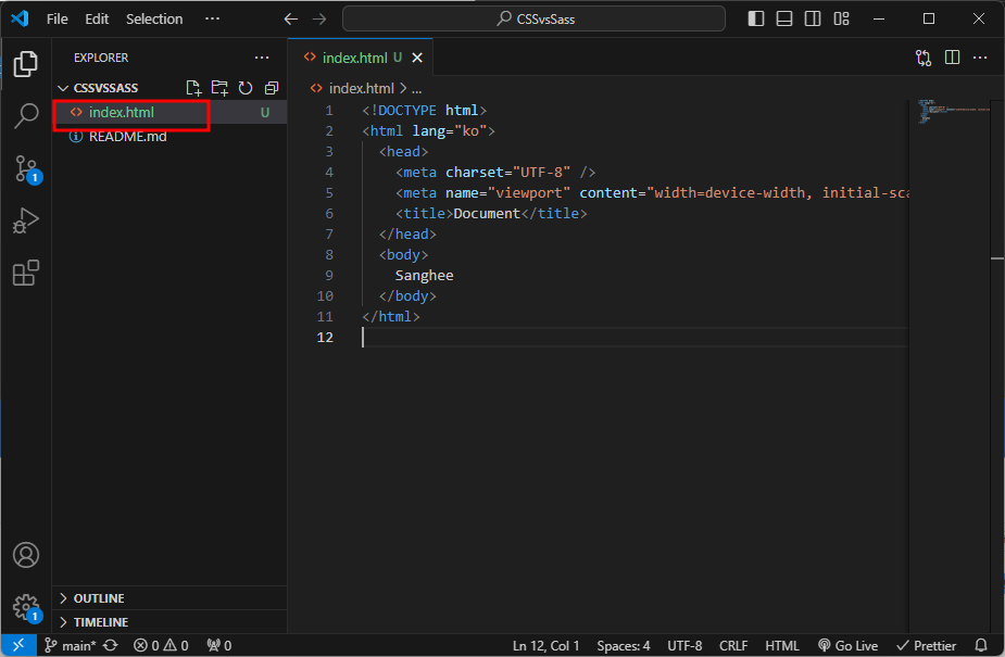 사용할 html과 scss파일을 만들어 저장한다.