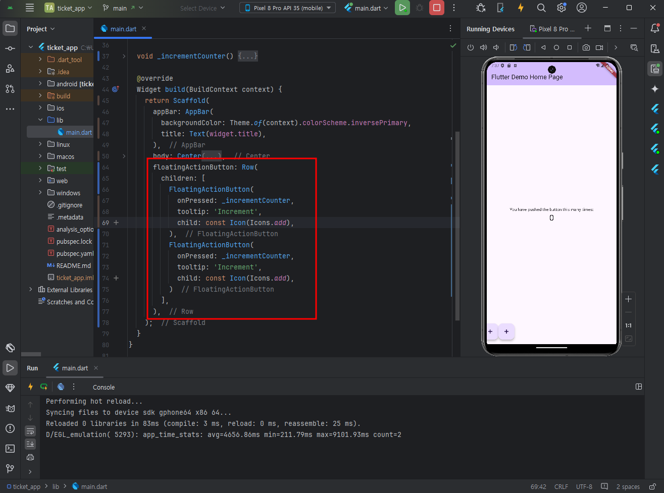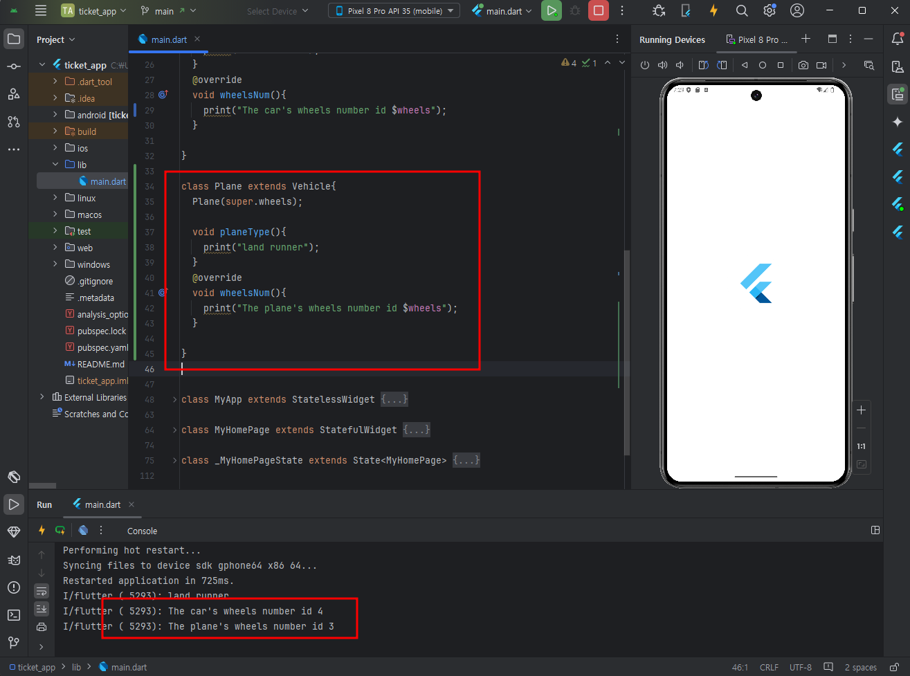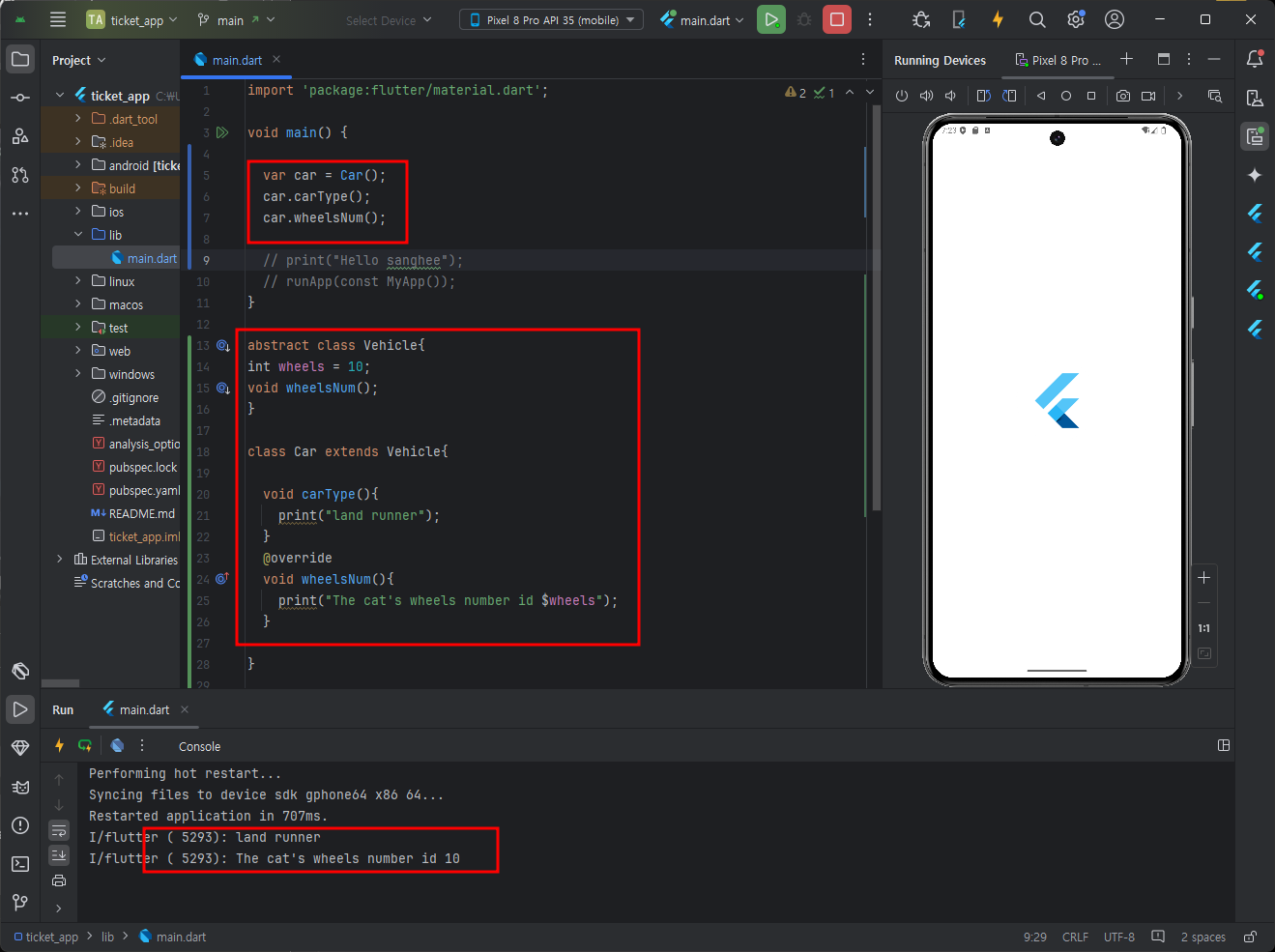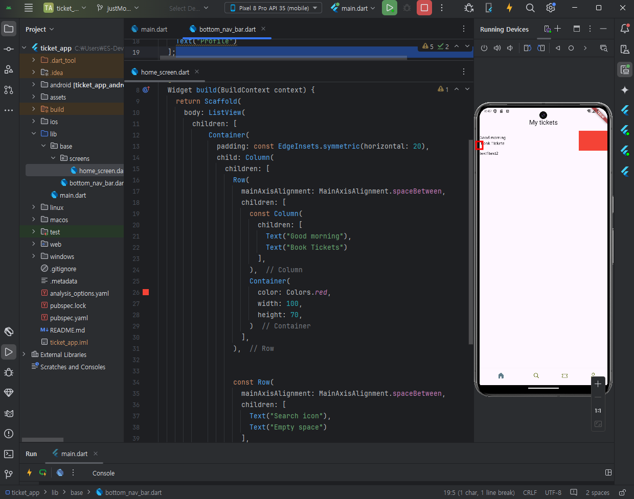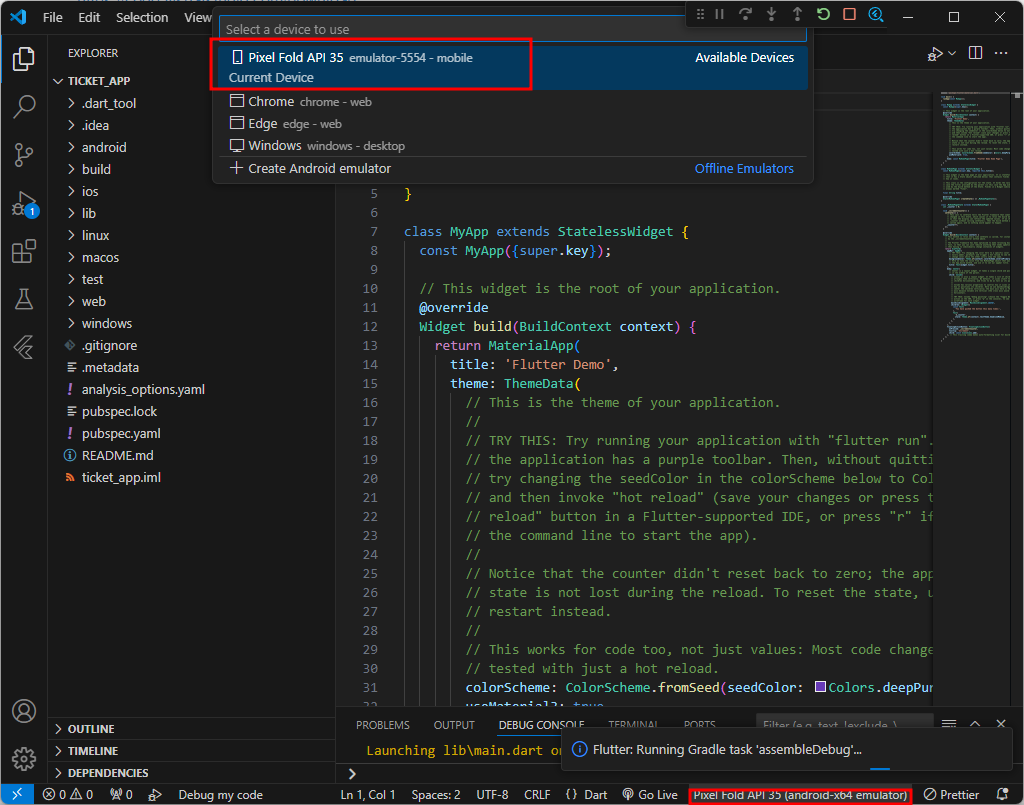 + flutter도 없을경우 install하라고 오른쪽 하단에 알림이 뜰것이다. 설치 - restart ide
