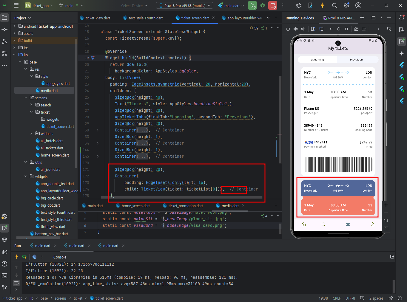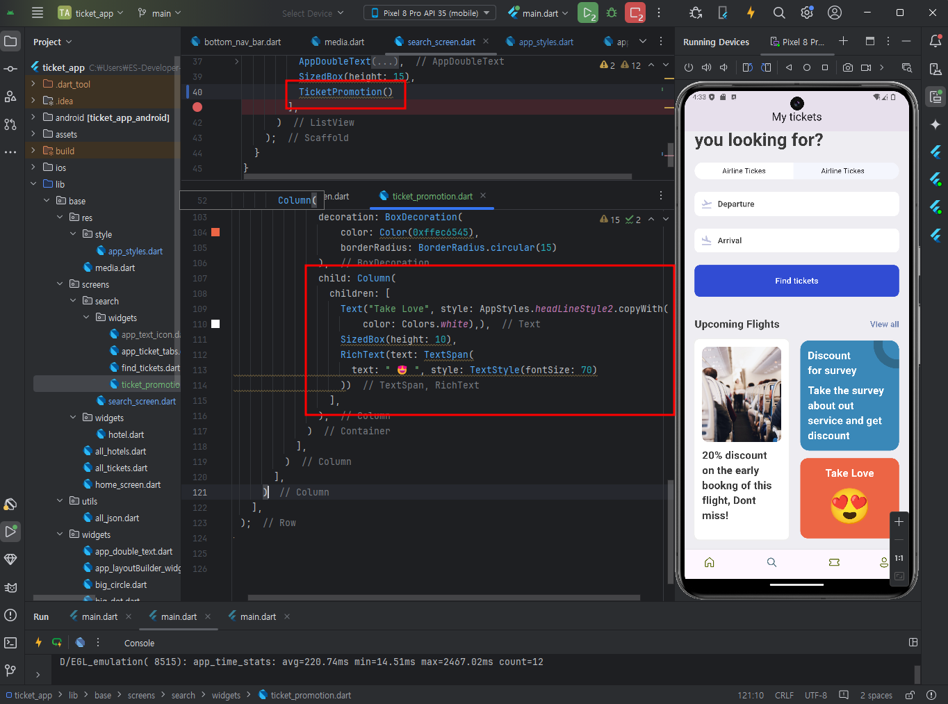 마지막 이모지 card를 추가한다. 이 섹션도 마찬가지로 ticket_promotion.dart파일로 따로 분리해 관리할 수 있다.